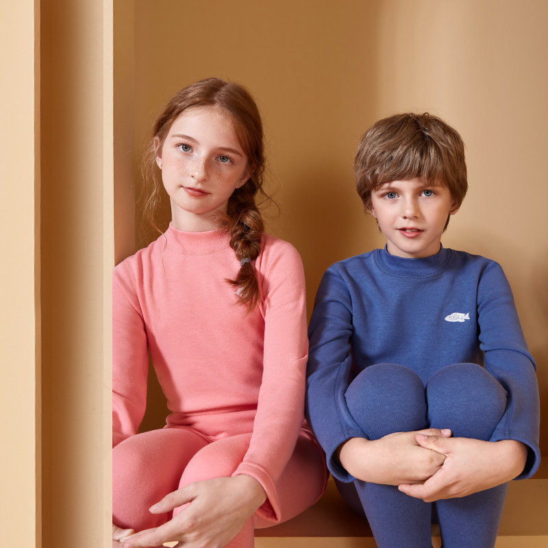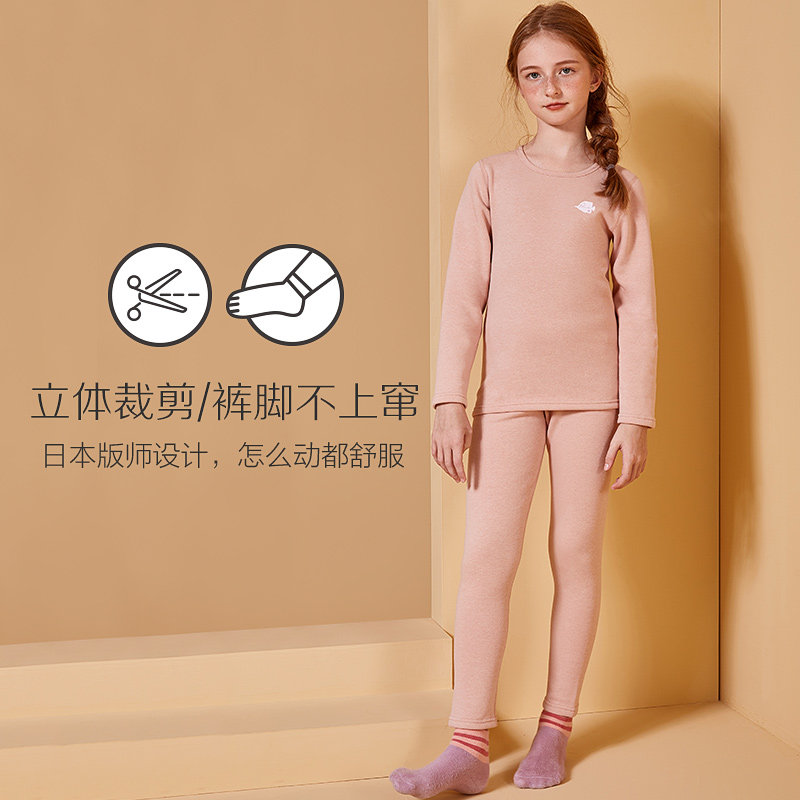Red bean children's warm underwear thickened plus fleece men and women middle child high neck autumn clothes autumn pants red life year suit