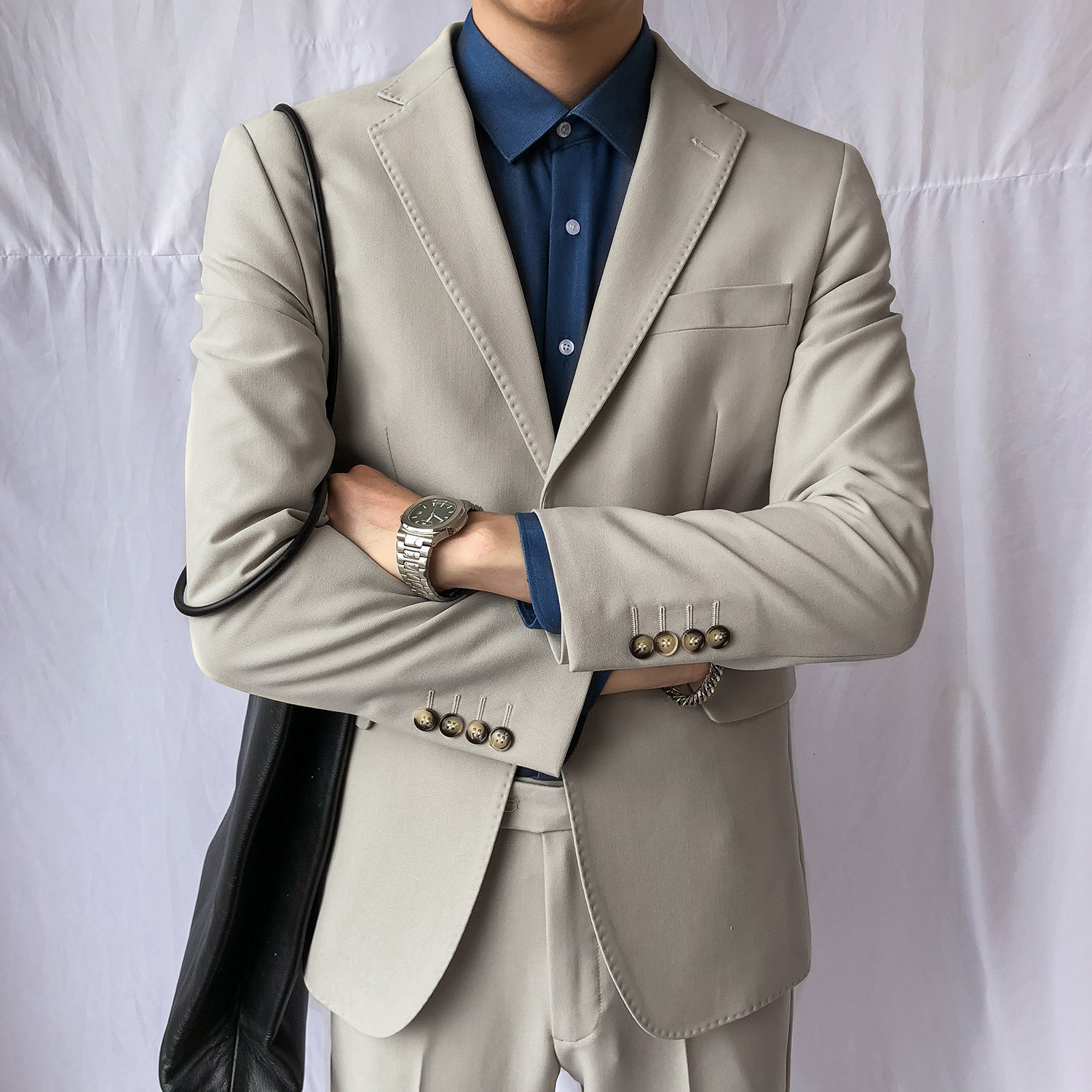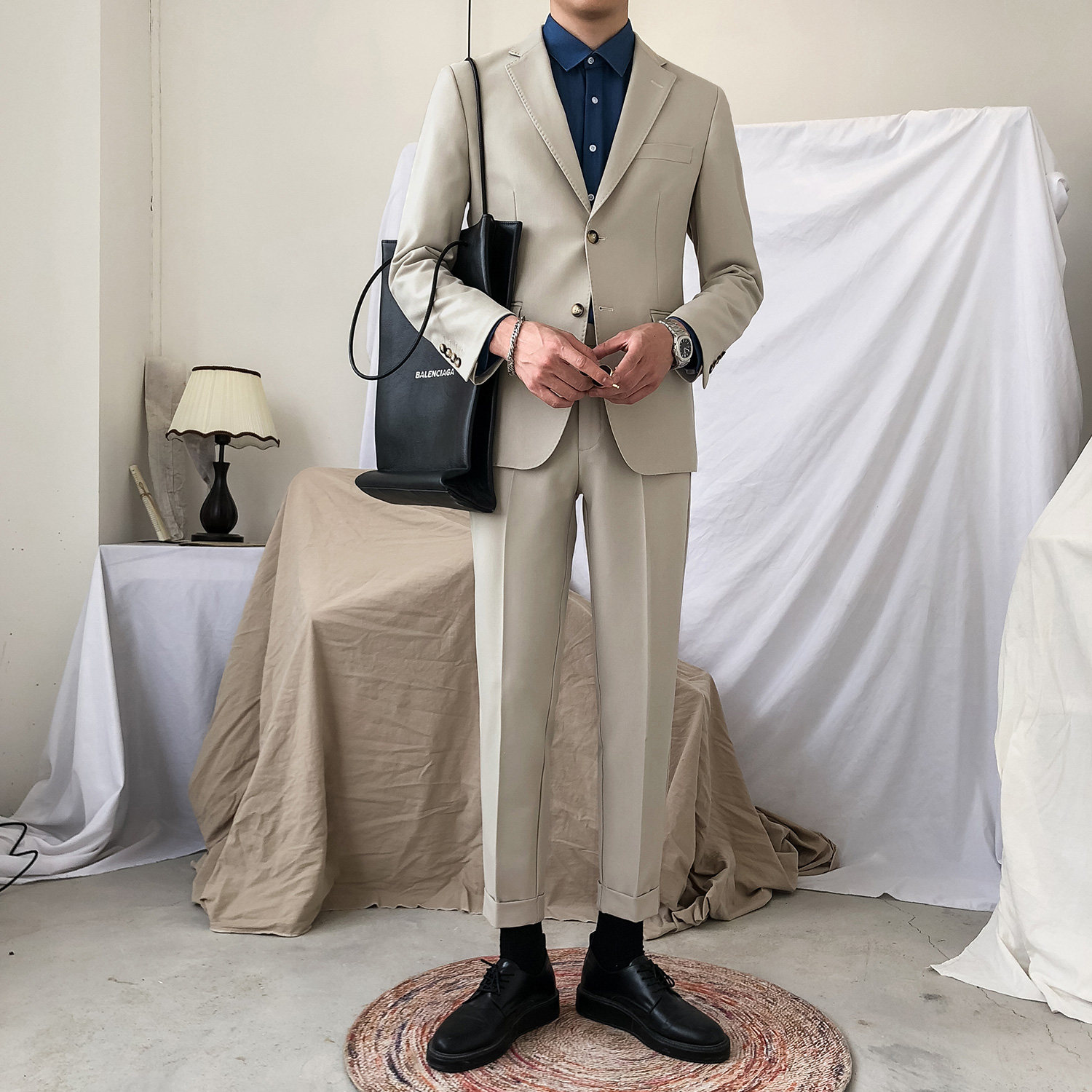 New pure Thicey suit suit men's Korean version for business casual youth Inron small suit men's two sets of damp