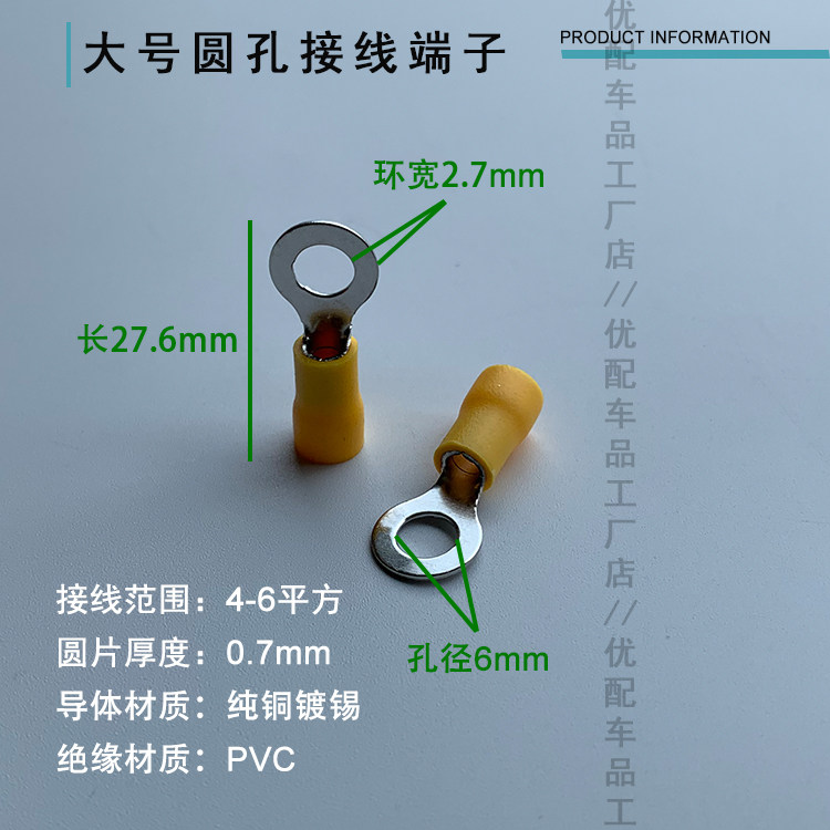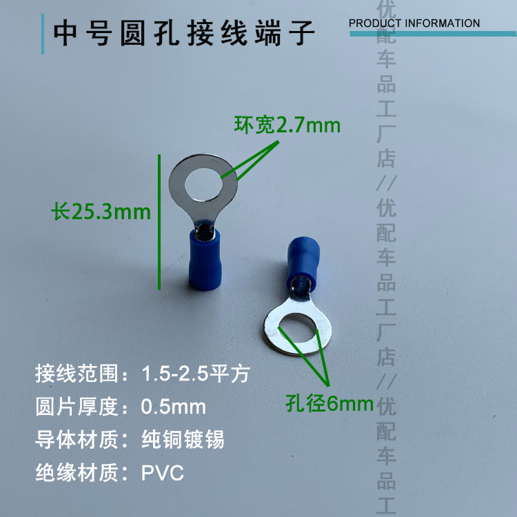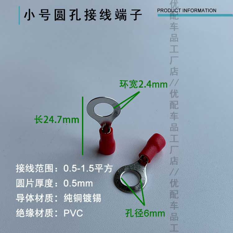 Circular pre - insulated terminal O cold - pressed terminal block of copper nose terminal terminal 0 5 - 6 square