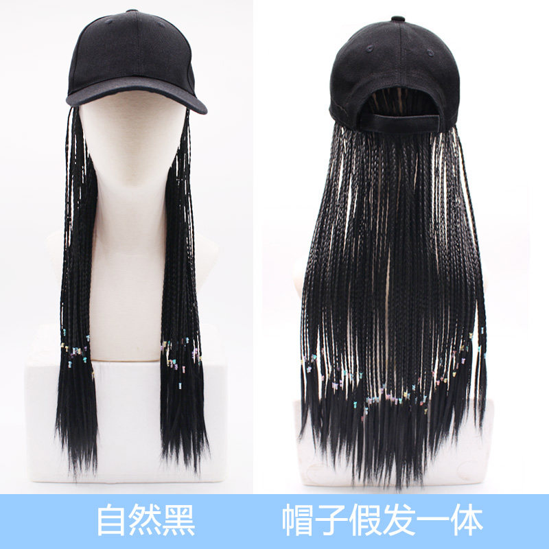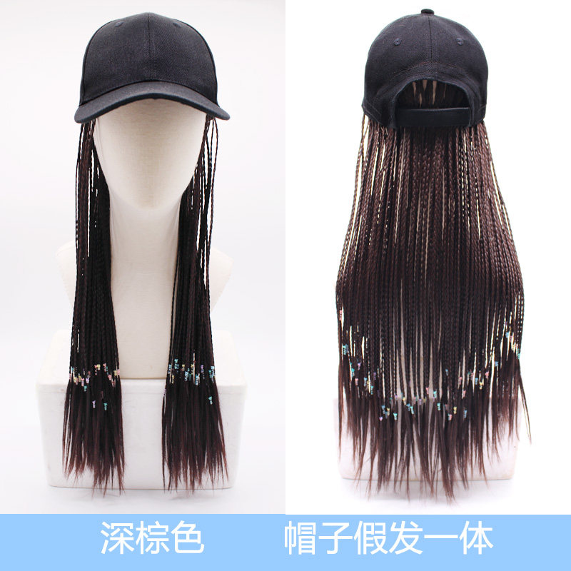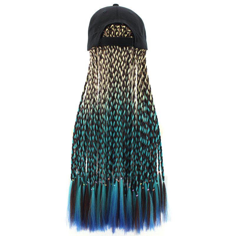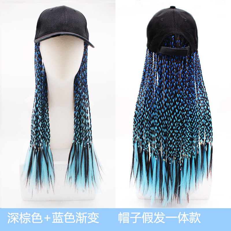 Dark brown black + blue beige hat + black + blue gradient dark brown + blue beige hat + black braid