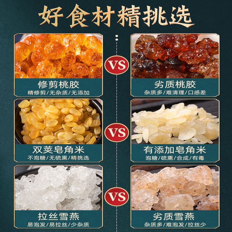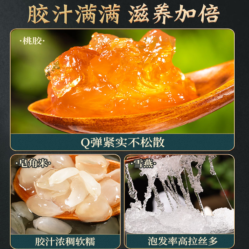 Peach Gum Snow Swallow Saponin Rice Combination Yunnan Natural Wild Premium Beauty Collagen Three Treasures No Impurity Tremella