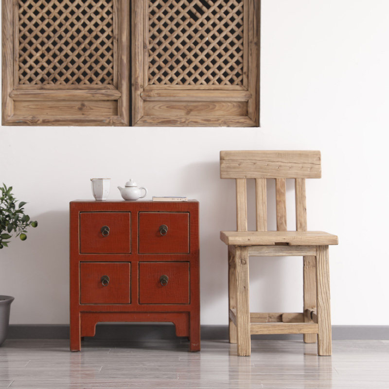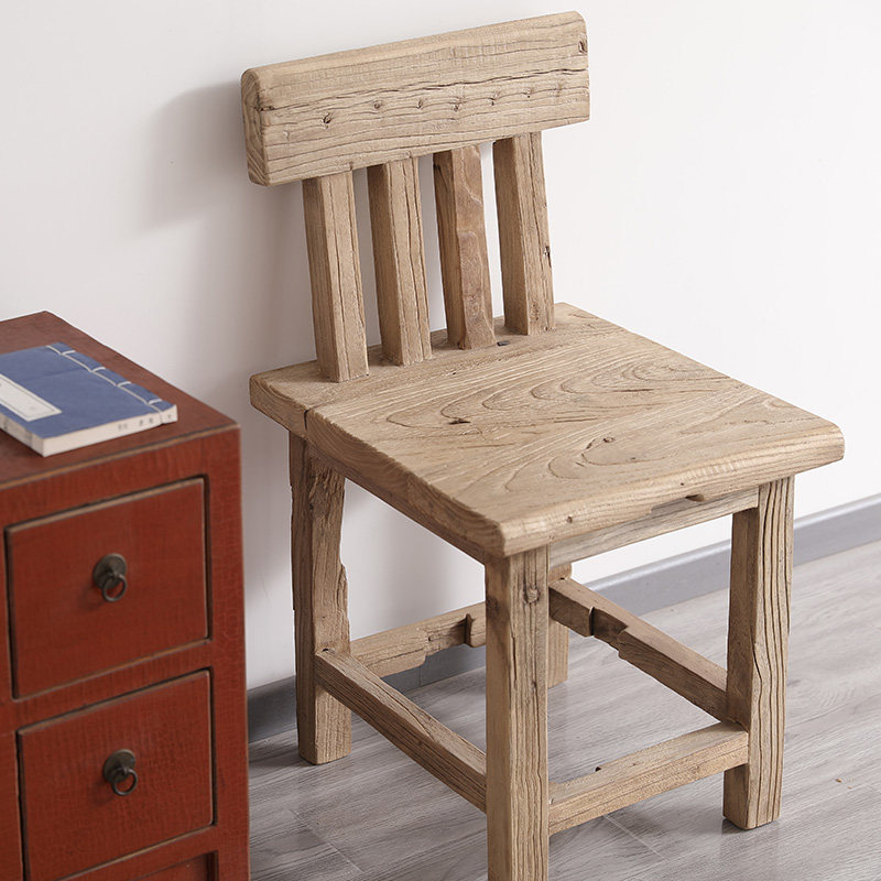 Old Elm Wood Dining Chair Solid Wood Comfort Chair Dining Room Home small family Dining Table And Chairs Idyli Modern Leaning Back Chair-Taobao