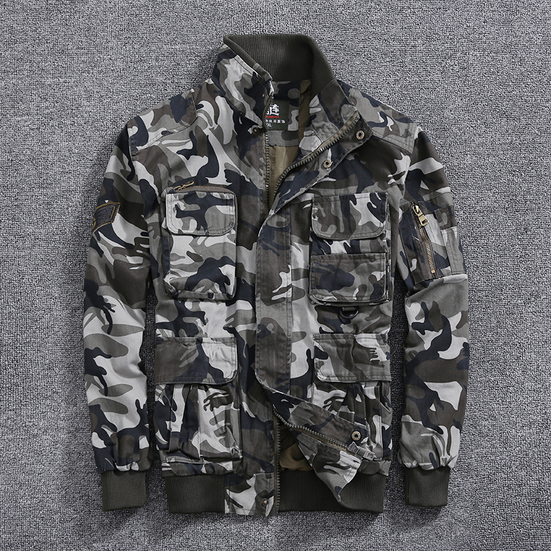 Spring camouflage jacket large size tooling camouflage clothing outdoor military camouflage camouflage clothing trendy men's wear-resistant multi-pocket jacket