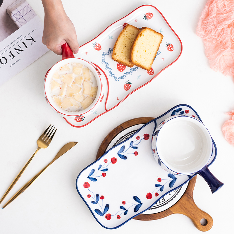 Hand-painted small fish breakfast 2-piece set Hand-painted berry breakfast 2-piece set Hand-painted floret breakfast 2-piece set Hand-painted strawberry breakfast 2-piece set Hand-painted colorful flower tableware 2-piece hand-painted fur tableware 2-piece hand-painted rhyme tableware
