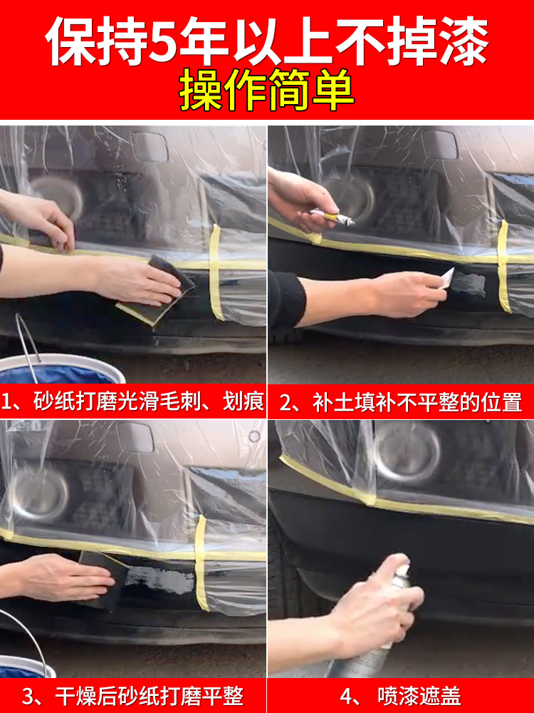 Car wheel brow front bumper plastic parts scratch repair paint patch black spray paint matt paint supplies black technology