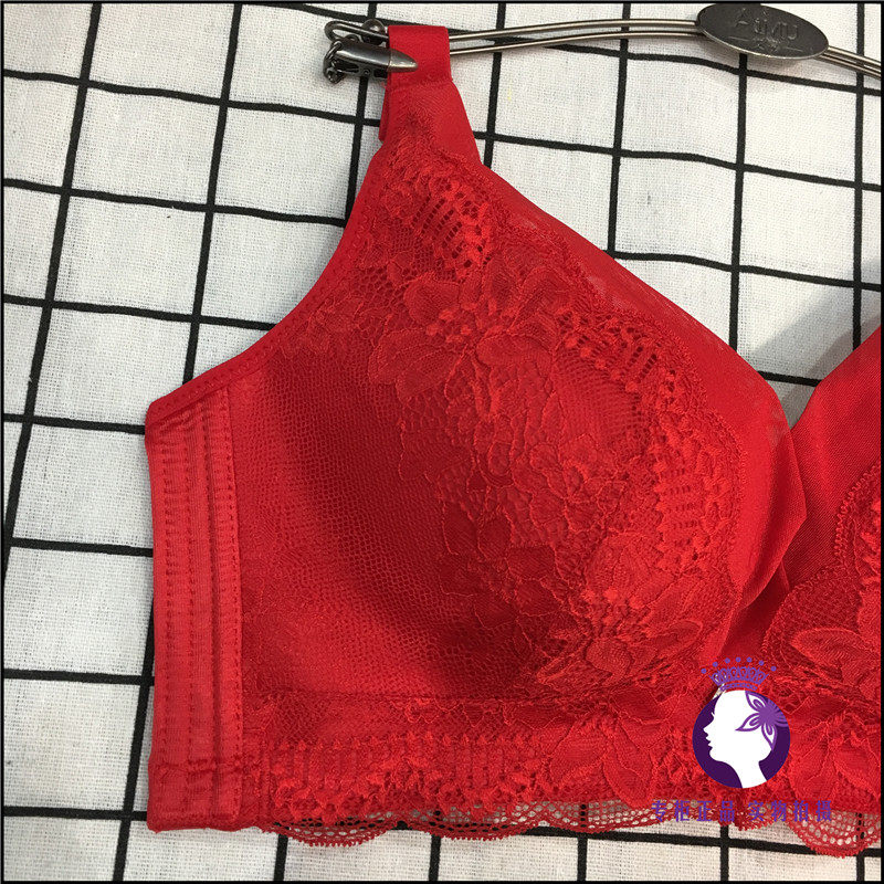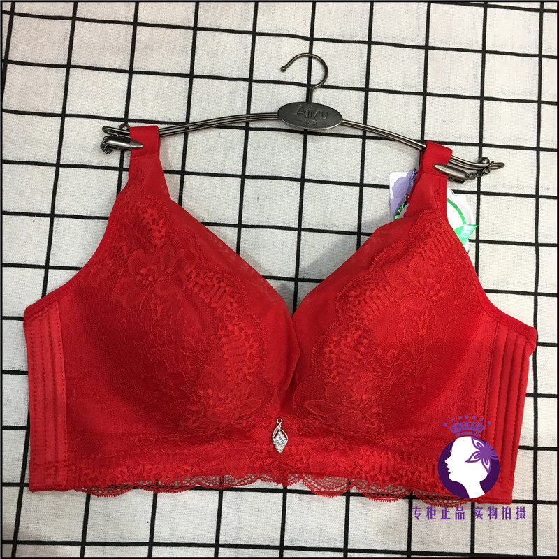 Aimu underwear big red plant dyeing adjustment type no steel ring BC gather side to get married natal year bra 19238