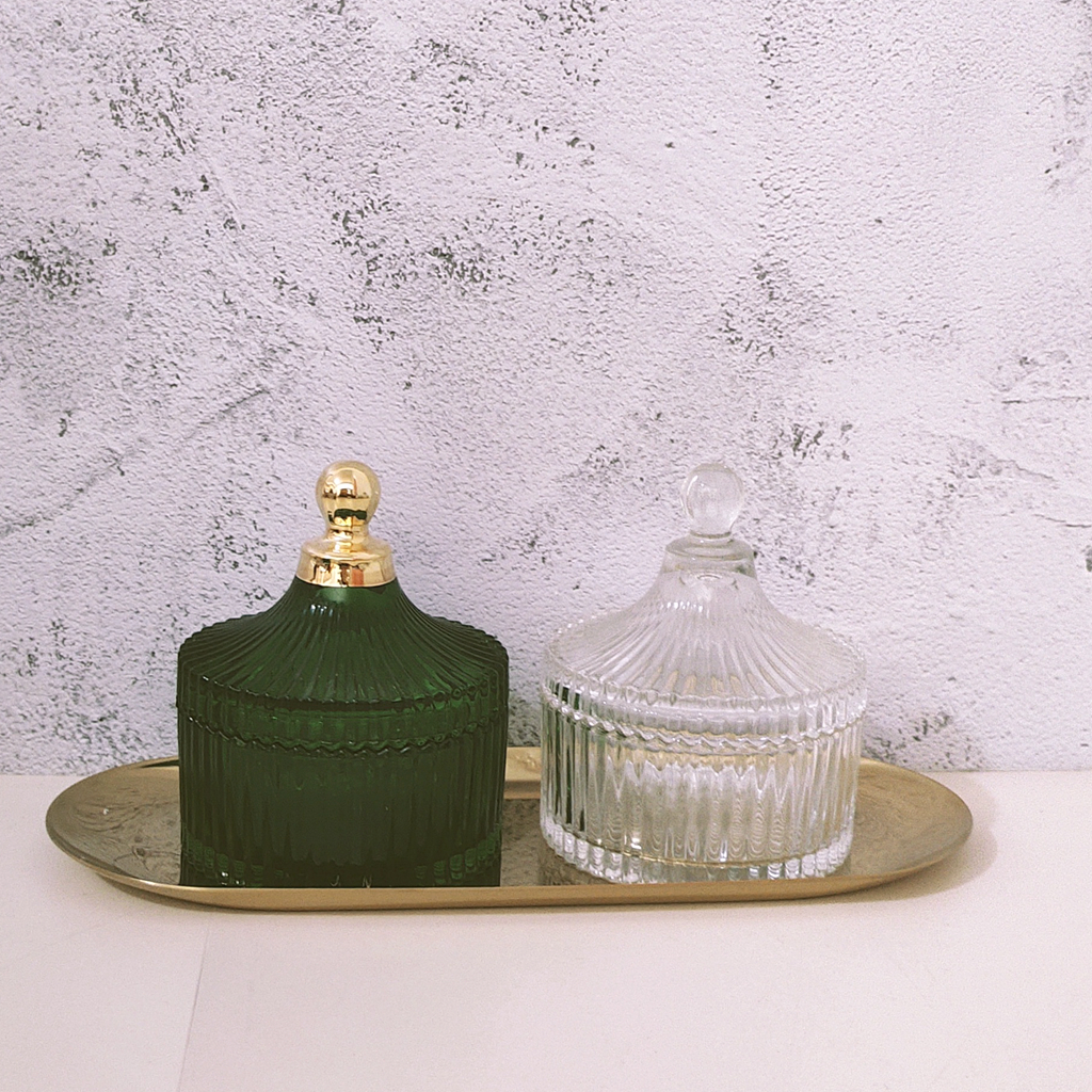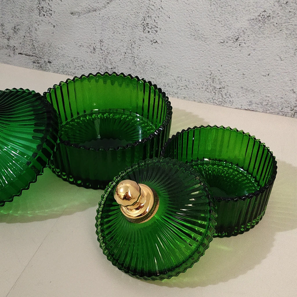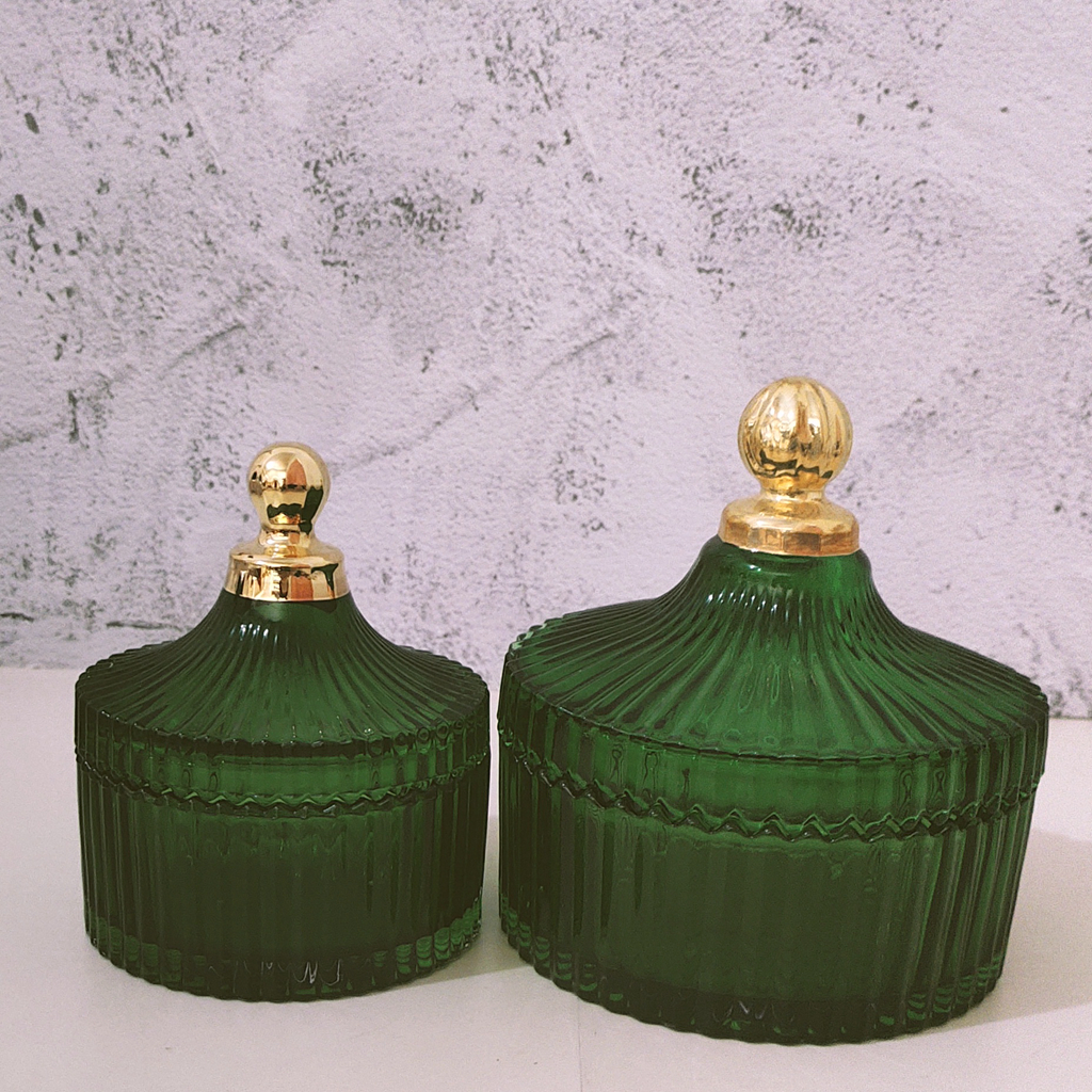 Size Set of dark green glass jars Right Large dark green cans (defect discount) Dark green small transparent trumpet tray left small dark green cans(defect discount)Left small dark green glass jars