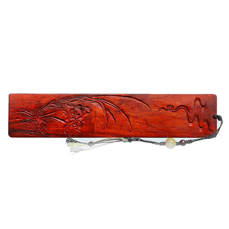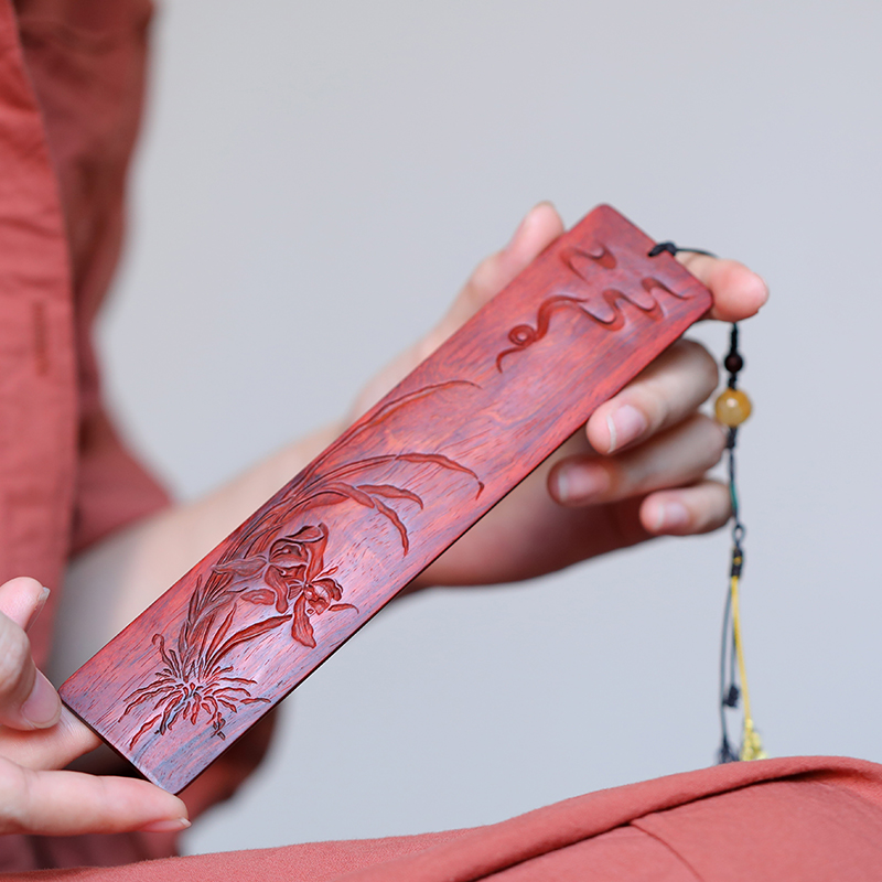 Original lobular red sandalwood plum orchid lotus bookmark hand-carved mahogany for teachers Mid-Autumn Festival student gifts