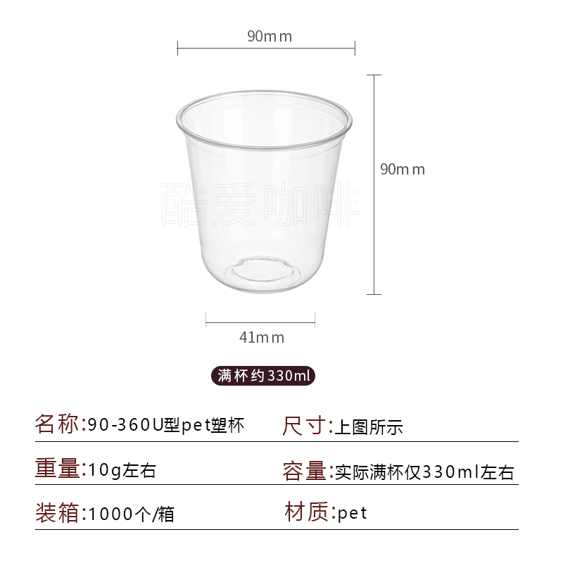 360ml U-shaped cup (actual full cup 330ml) 90-360u gold print (only cup) 90 caliber one-piece frosted transparent pp cup cover 90 caliber one-piece frosted white