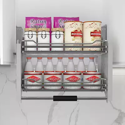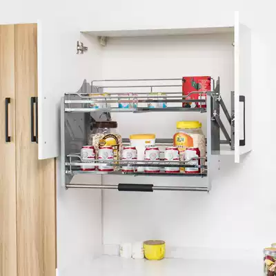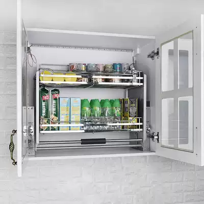 Kitchen top cabinet hanging cabinet lifting basket stainless steel double-layer power buffer integral cabinet storage and seasoning shelf