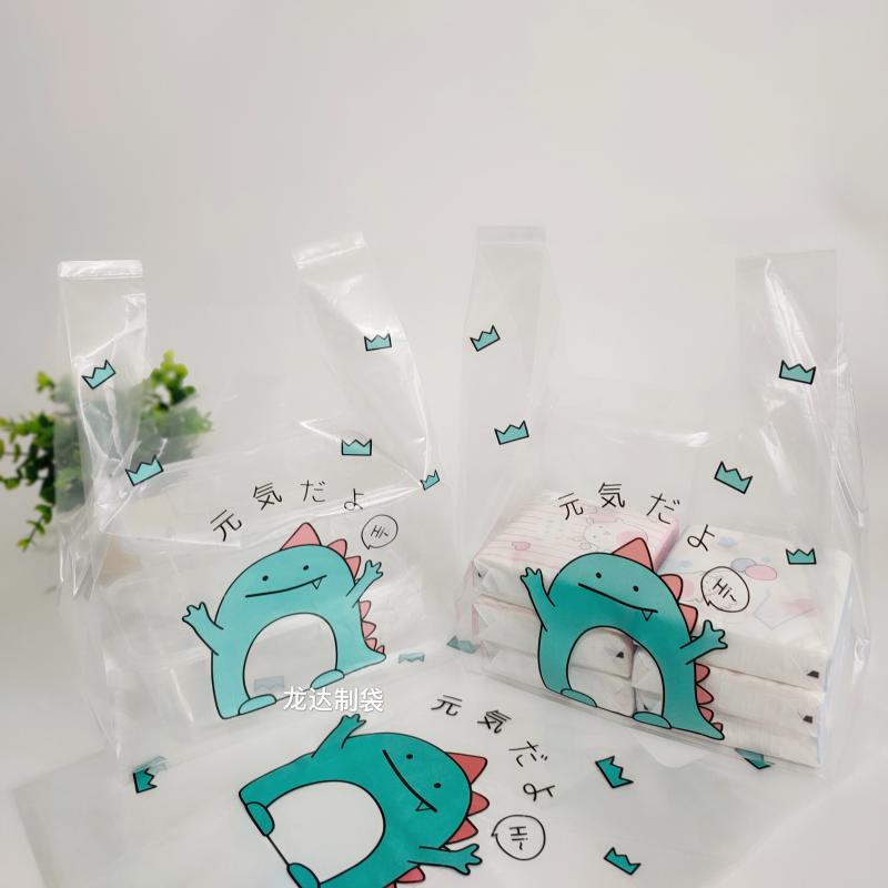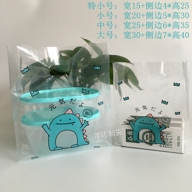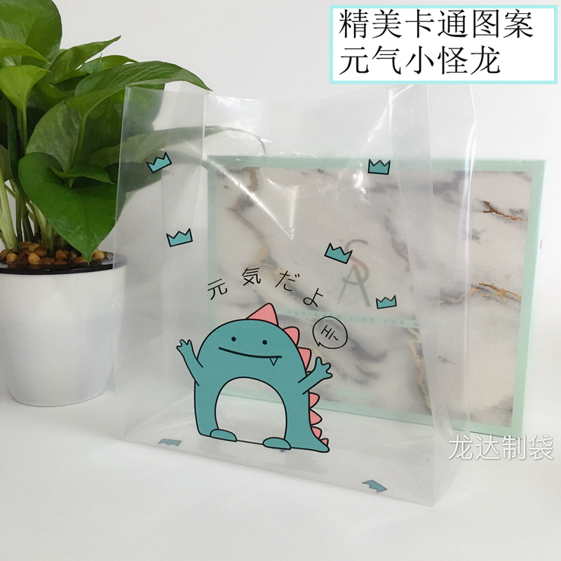 Net red new product cartoon small dinosaur transparent tote bag clothing children's clothing gift plastic bag baking dessert packaging bag