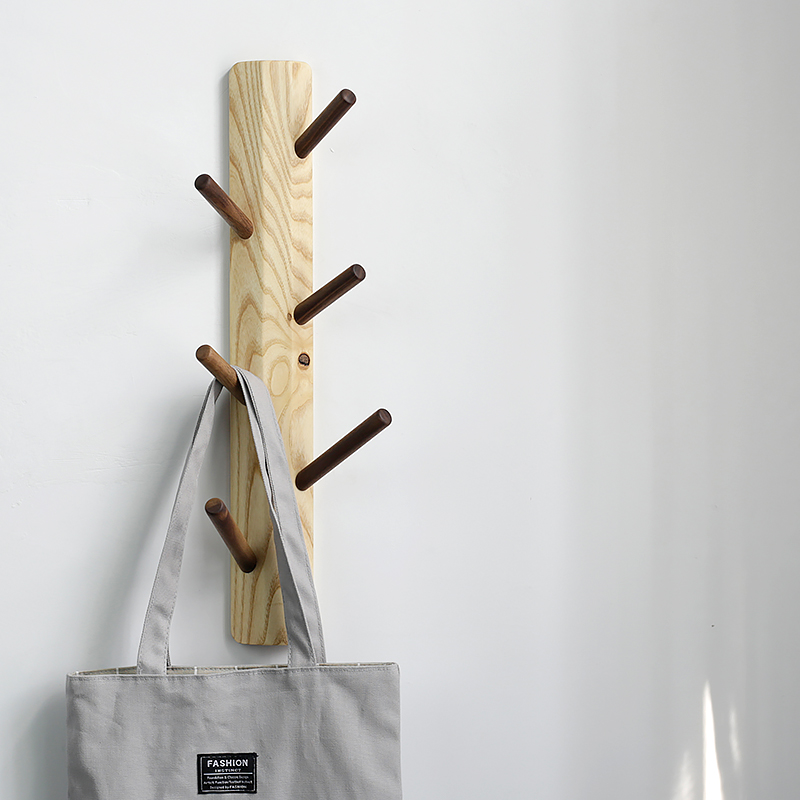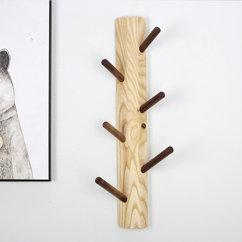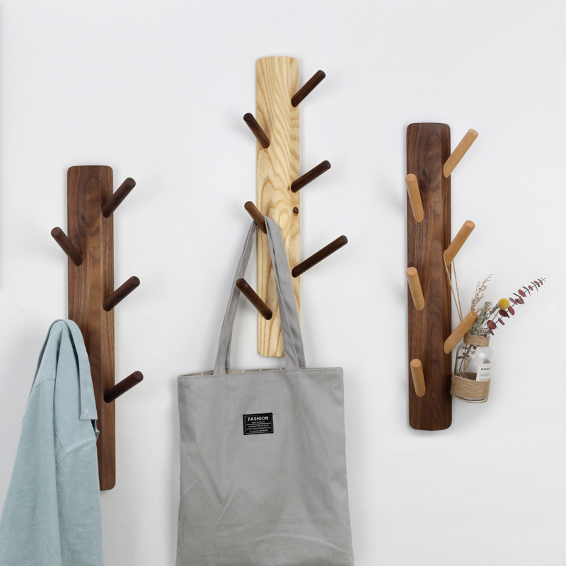 Solid wood coat hook Branch branch hook Nail-free entrance decoration hook Black Walnut creative wall pylons Nordic