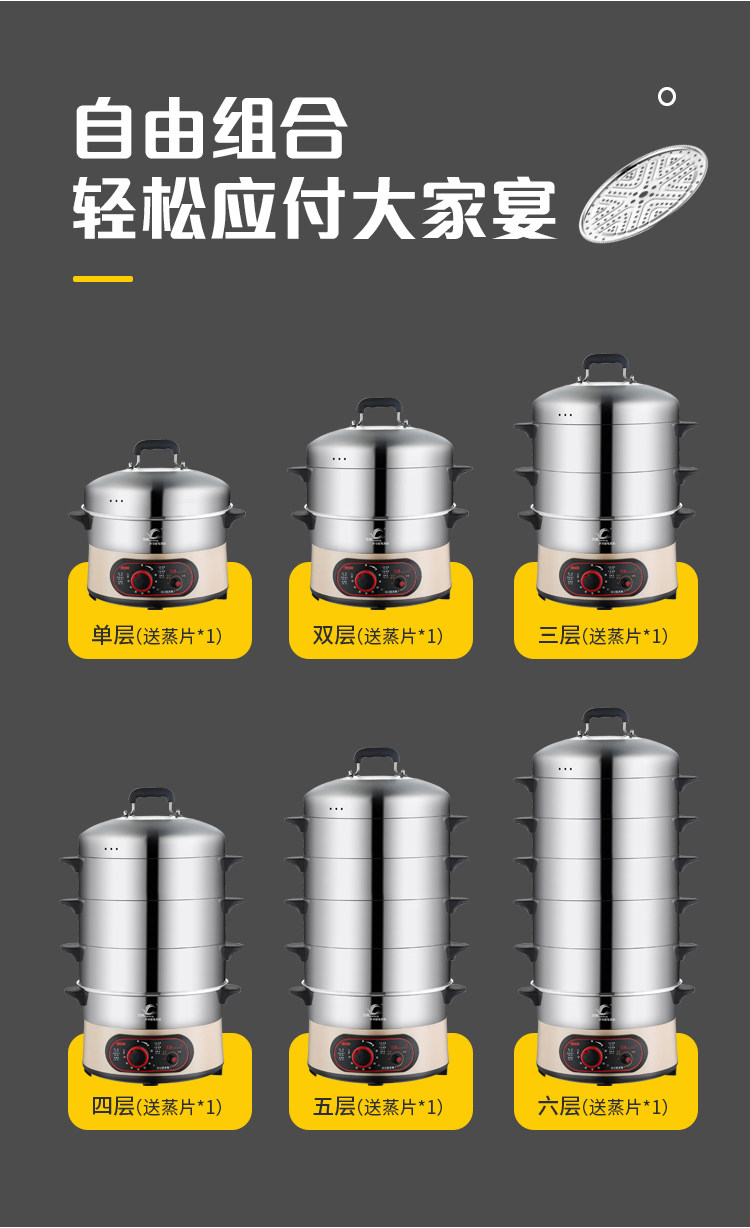 Insulated thermoregulation timed electric steam boiler multifunction home three-layer large capacity steamed buns steamed buns steamed buns seafood plug-in electric hot pot