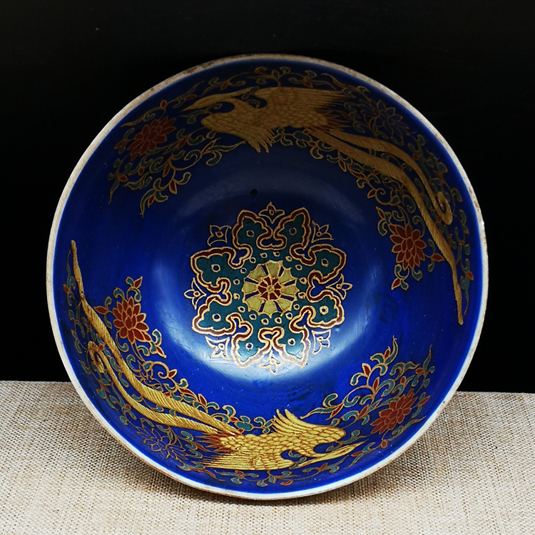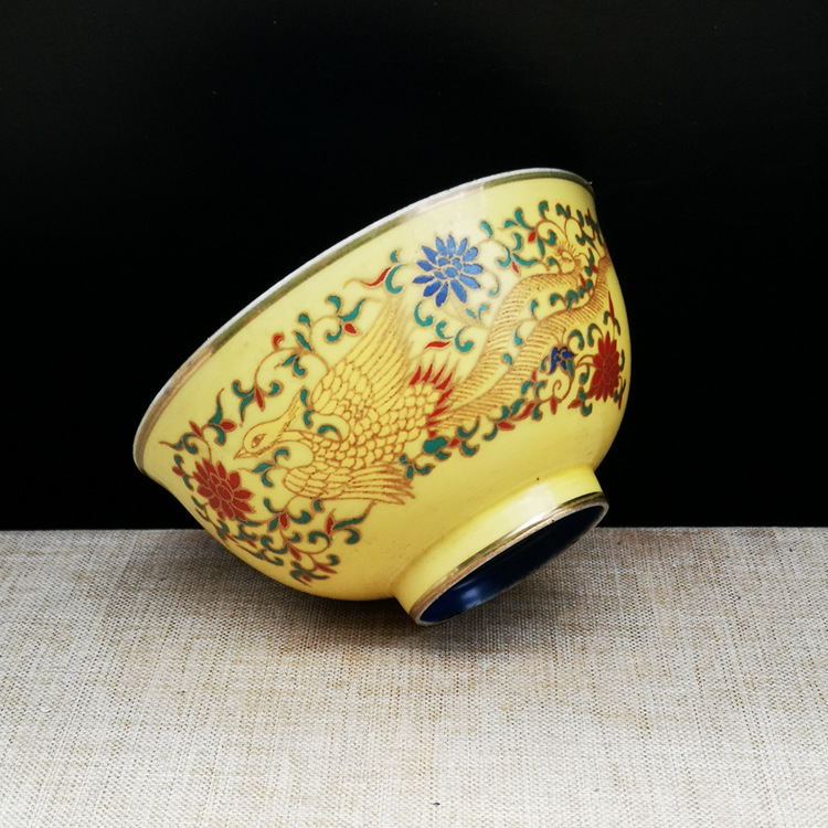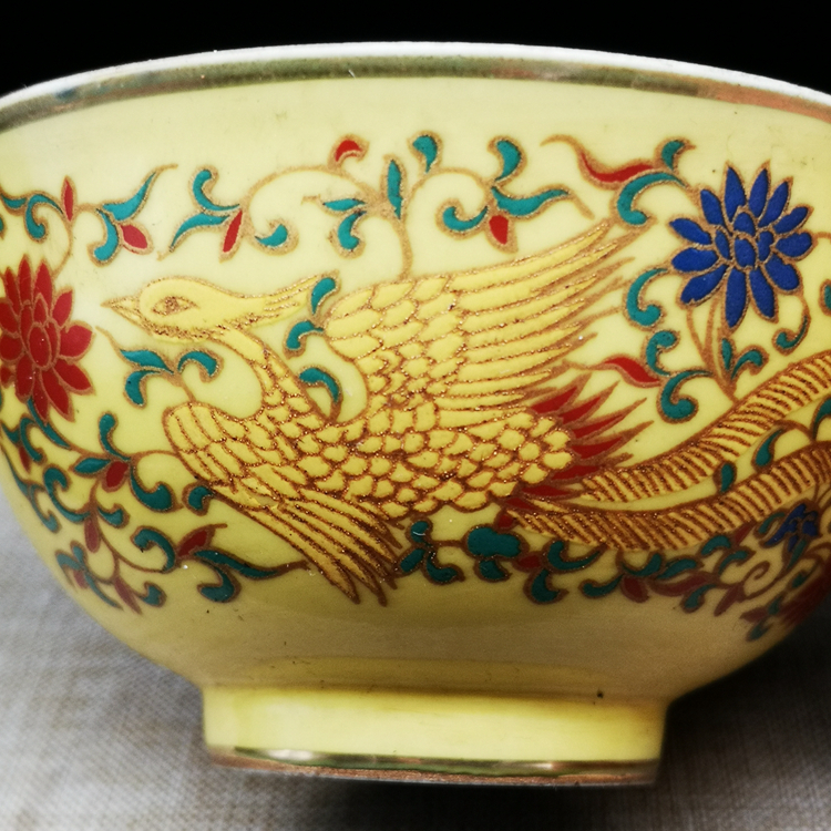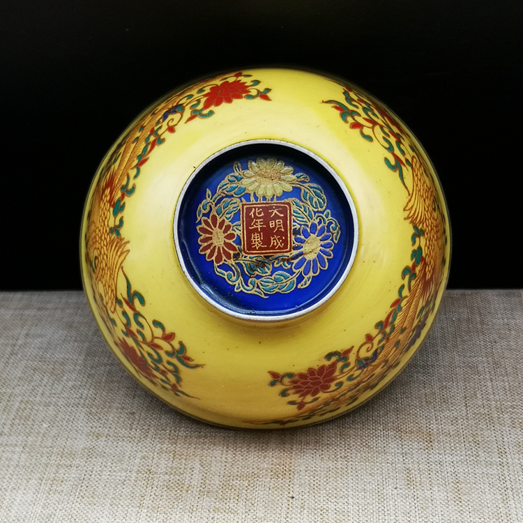 Daming Chenghua year-made yellow glaze bucket color flower phoenix pattern cup antique porcelain antique antique old goods collection decoration