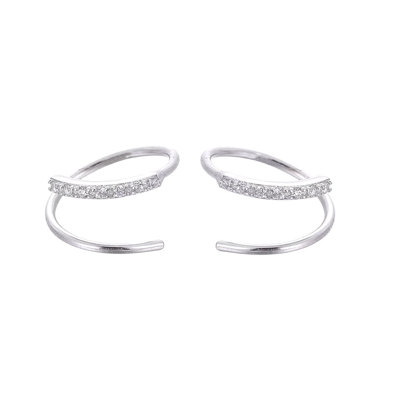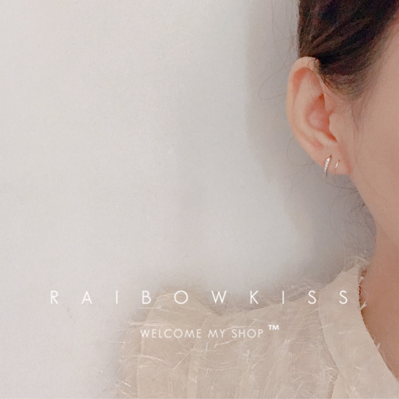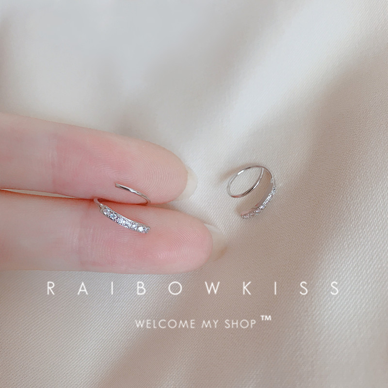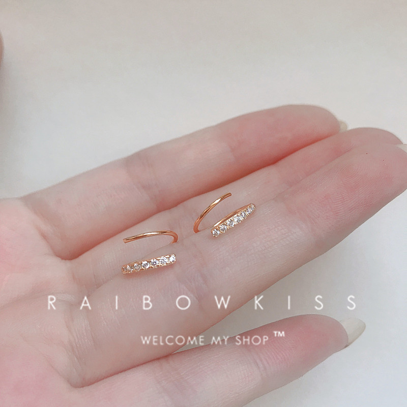Small freshener Korean version double layer S925 pure silver ear ring female minimalist temperament 100 lapped water drill spring ring mesh red ear pin