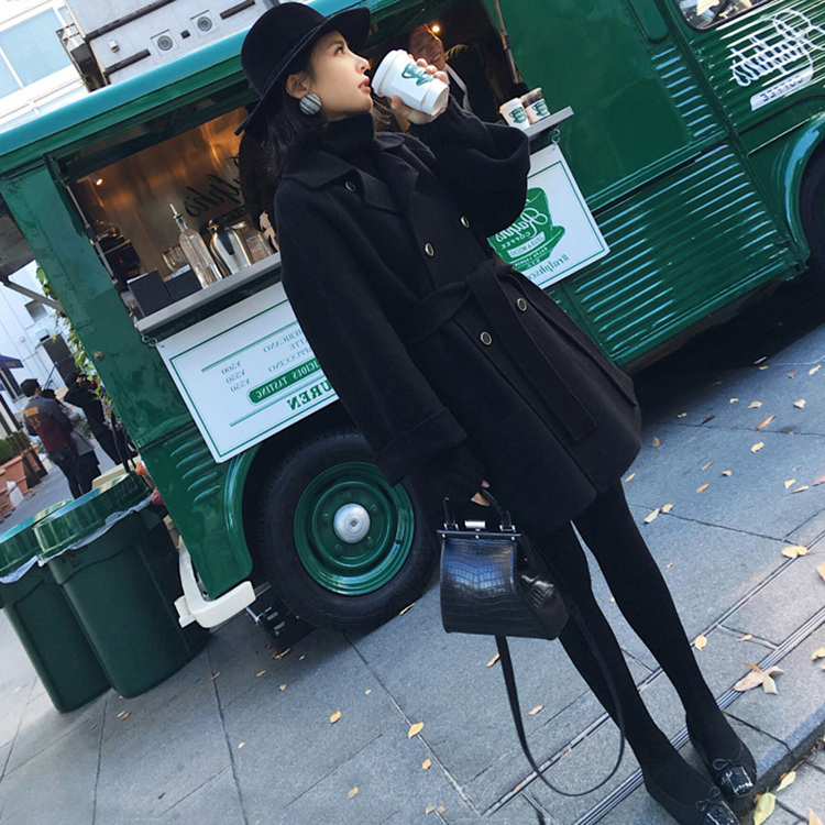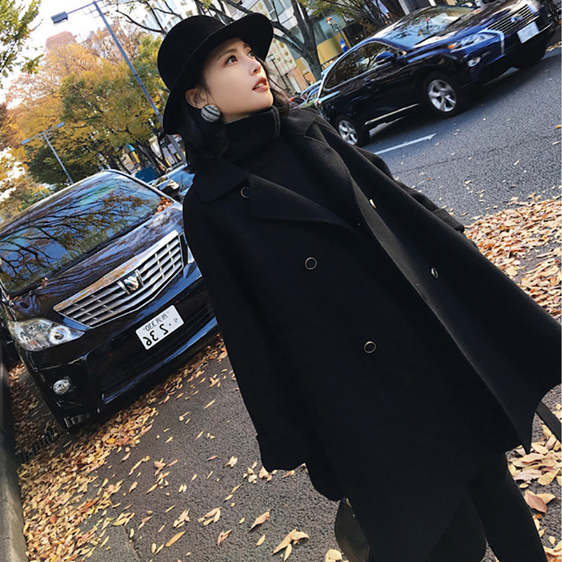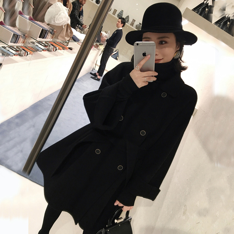 Cloak bifacial cashmere big coat woman medium long version 2022 autumn and winter new Hepburn Black Fur Coats
