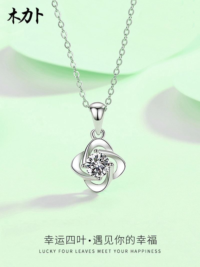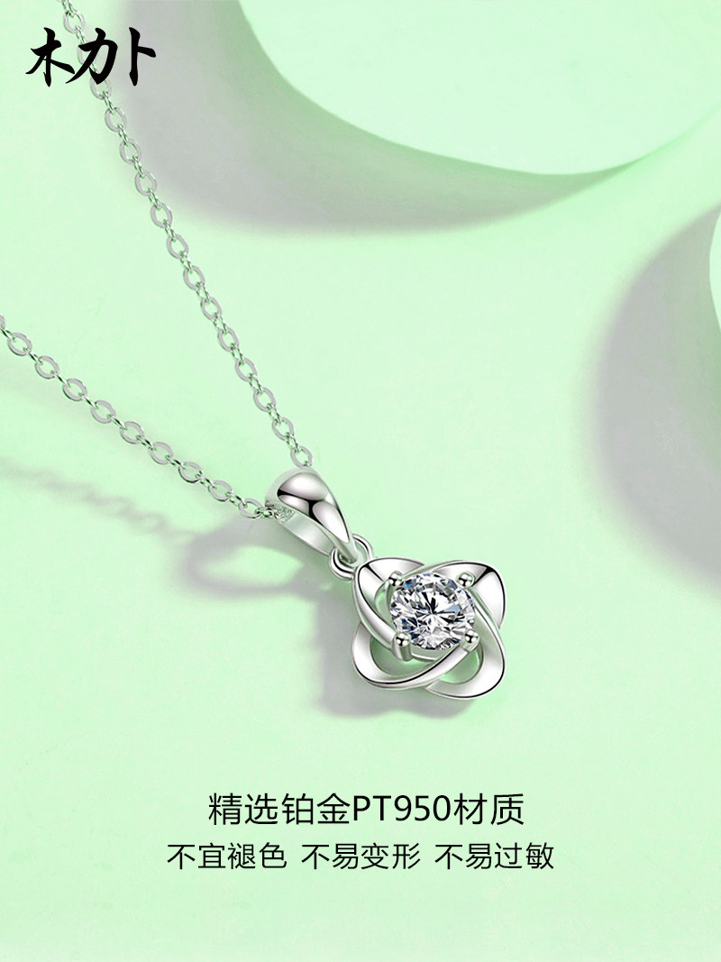 pt950 platinum pendant moissanite diamond four-leaf clover pendant female 18K white gold collarbone female fashion simple jewelry