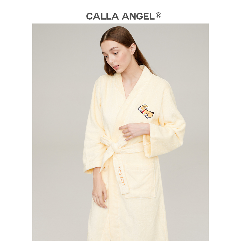 Calla Angel pure cotton bathrobe woman long suede cotton towel wool collar male soft absorbent couple puppy bath clothes