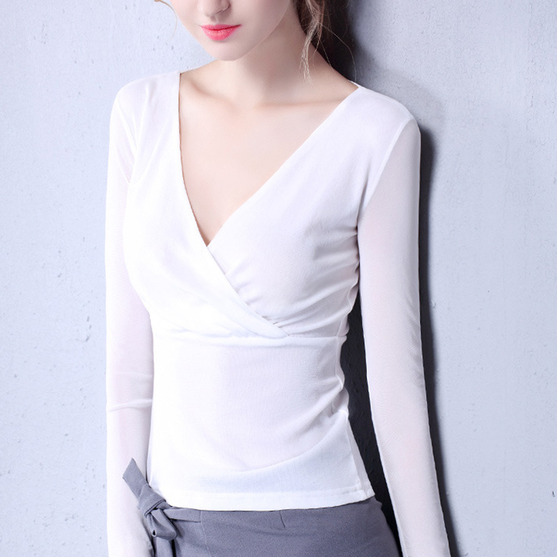 Large size deep v-neck base shirt ladyboy clothes cos supplies long-sleeved outer wear tight women's big brother cd cross-dress blouse