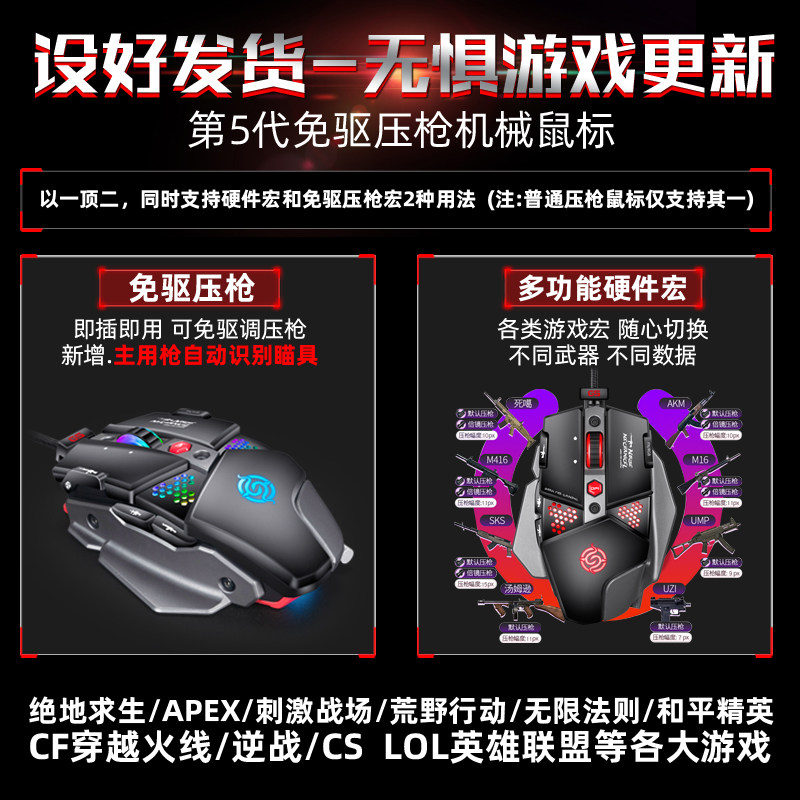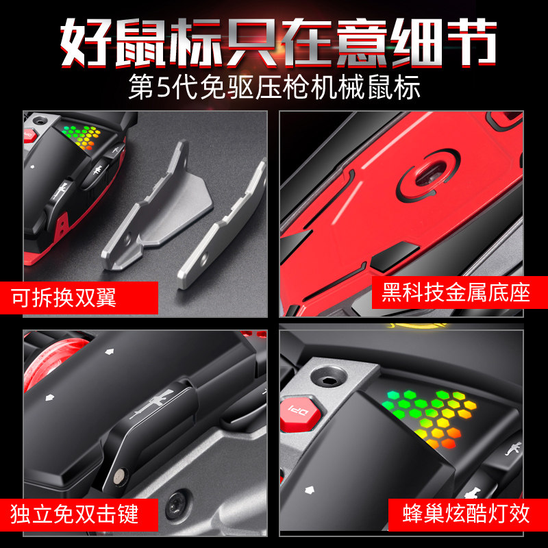 Mechanical wired mouse Eating chicken game drive-free hardware pressure gun gaming desktop notebook Internet cafe office home