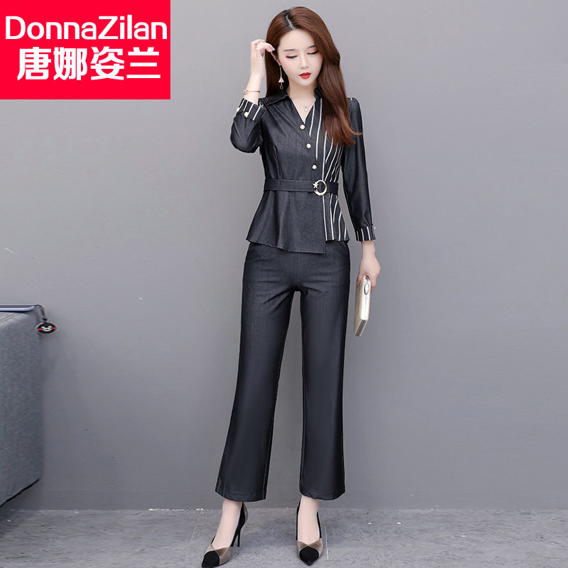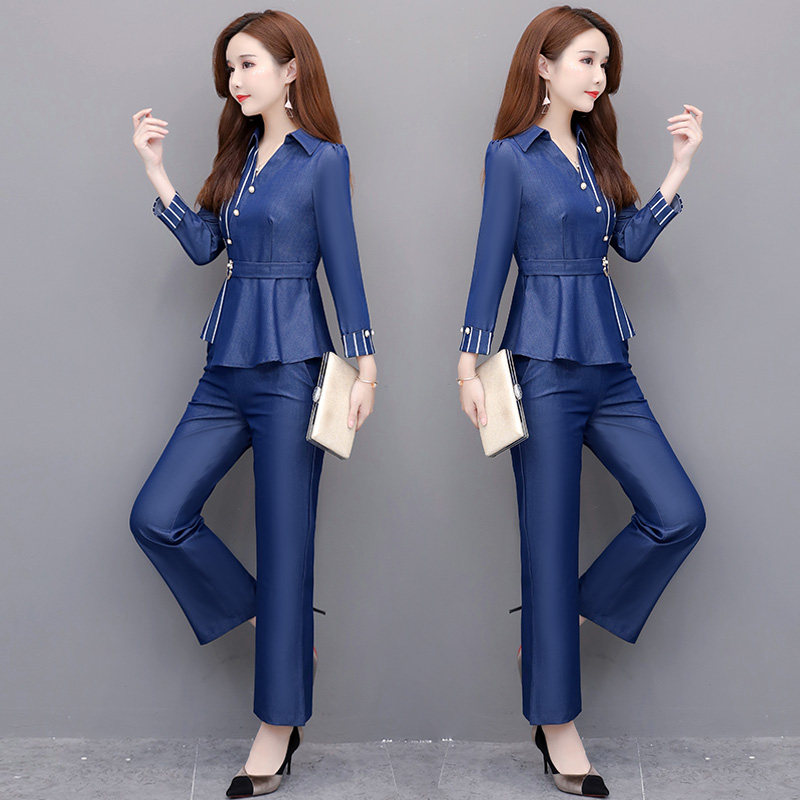 Brother-in-law light cooked wind and reduced age suit women 2022 spring new fashion temperament expats slim foreign broadlegged pants two sets