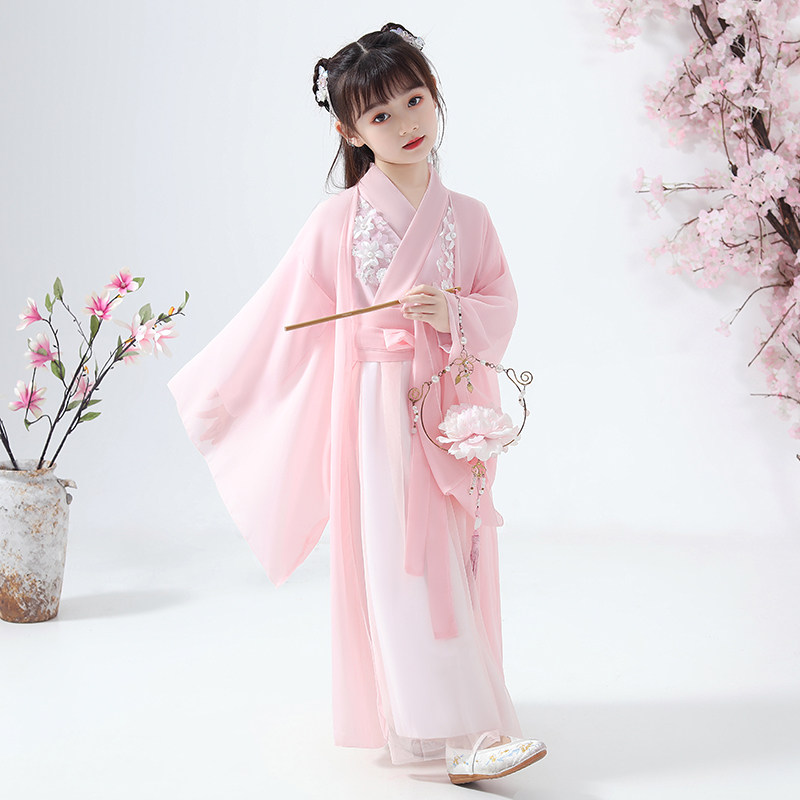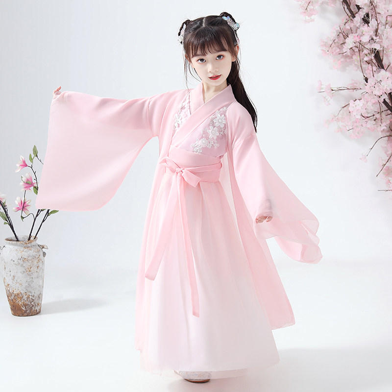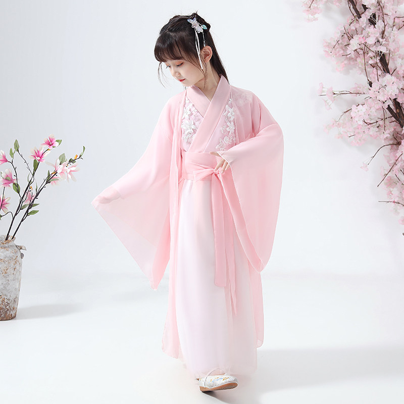 Girl's ancient clothes Hanfu Chinese wind and autumn clothing Children's superfairy floating fairy ocean clothing little girl Guzheng Out of service