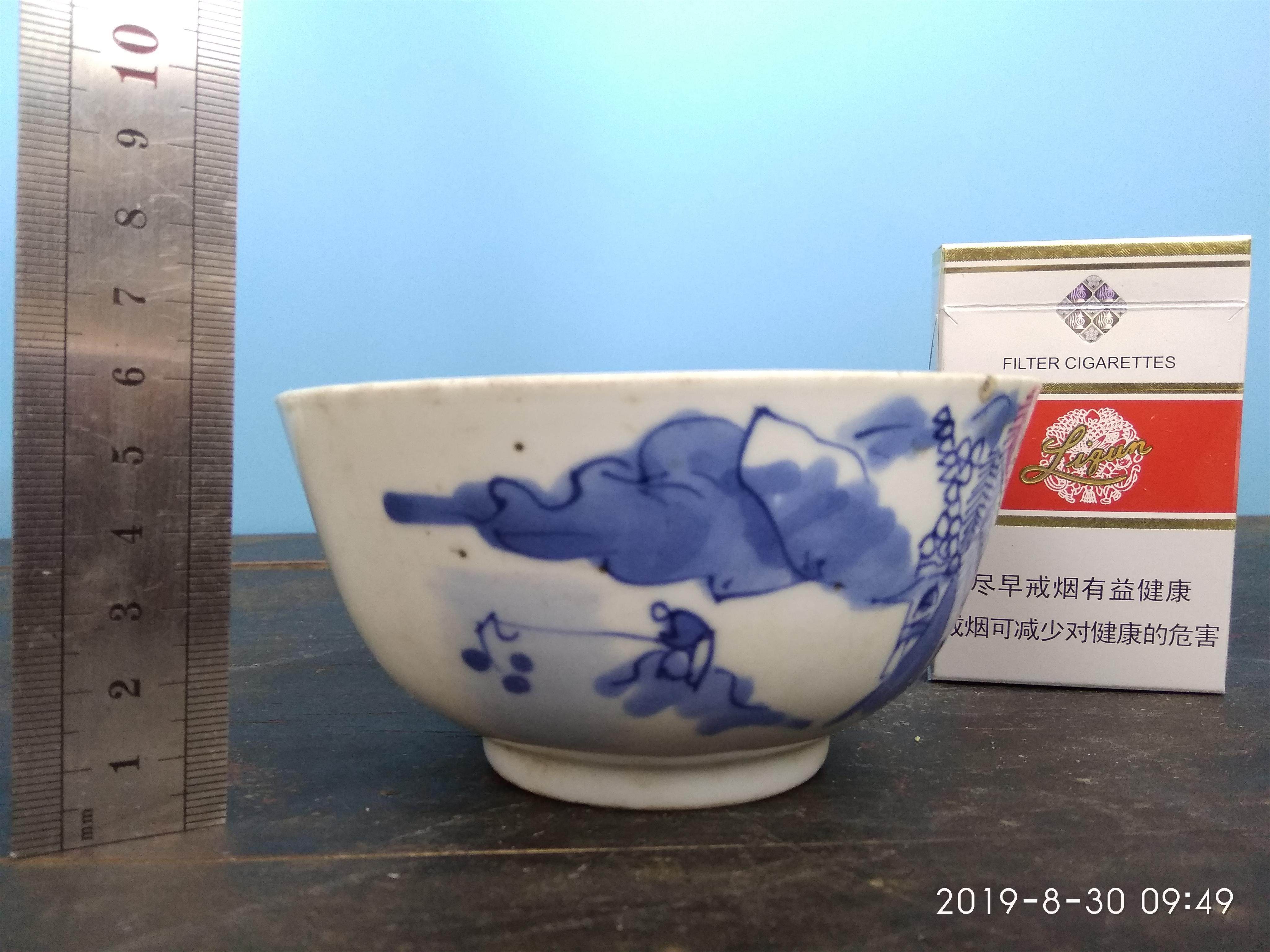 Qingqian Long Jingdezhen hand-painted fisherman and woodsman ploughing and reading blue and white character bowl blue and white porcelain old porcelain