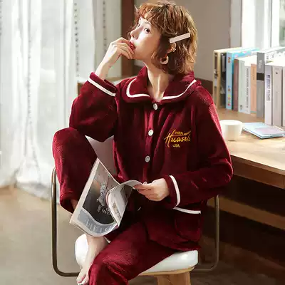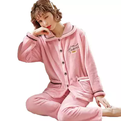 Wear thick and warm flannel coral velvet home wear pajamas women's autumn and winter long sleeve cardigan plus size