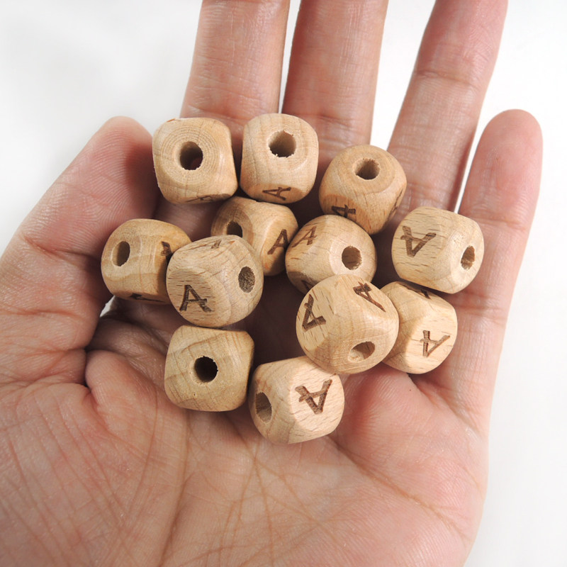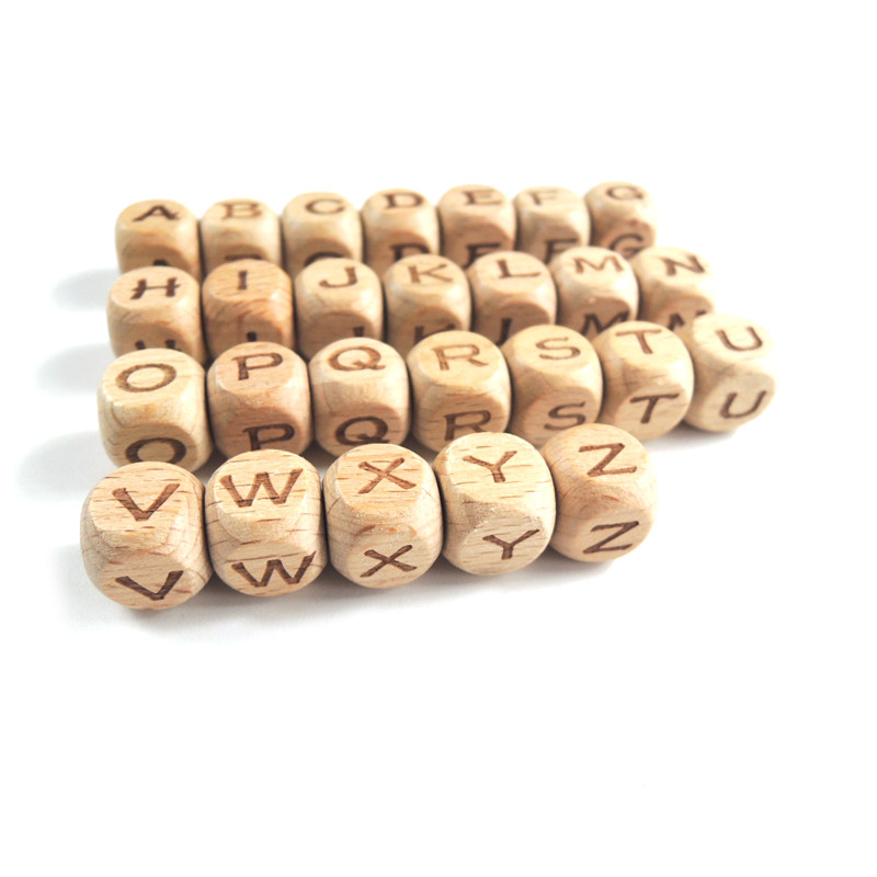 moonpie log beech wood laser 26 English letter beads DIY handmade personality customize English name