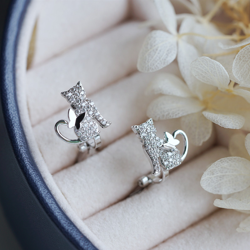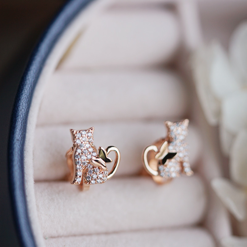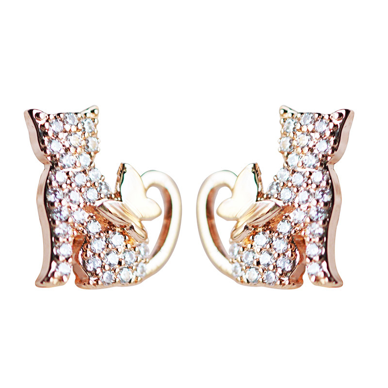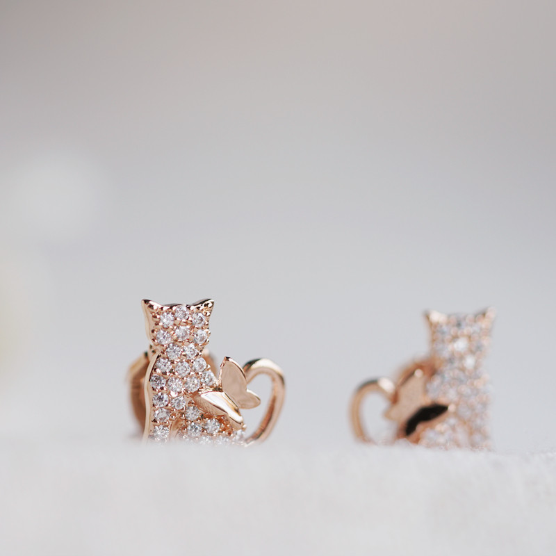 S925 Pure Silver Needle Cat with Rose Golden Clothes Student Clothes 2022 New Student