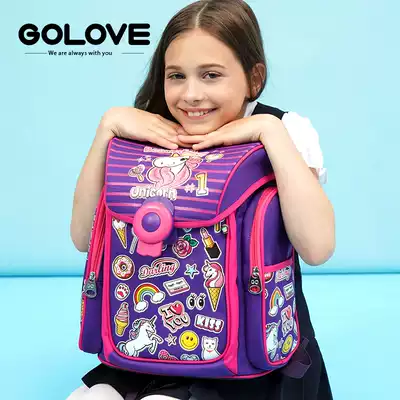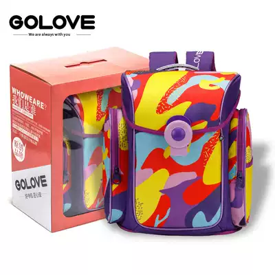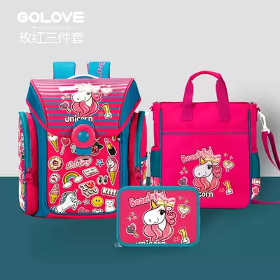 GOLOVE Three-Piece Gift Primary School schoolbag women's double shoulder bag 1-4 grade three-piece stationery box cram gift box bag crest burden reduction Super Light girl children's gift