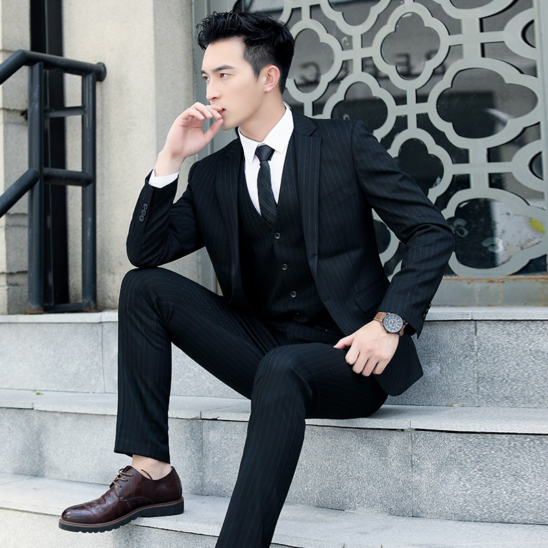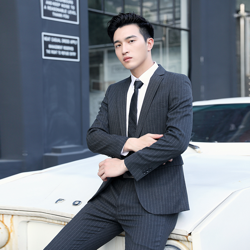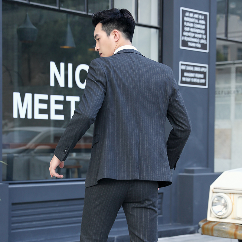 Suit suit Male groom wedding dress Slim Korean version striped casual handsome British fashion trend suit formal suit