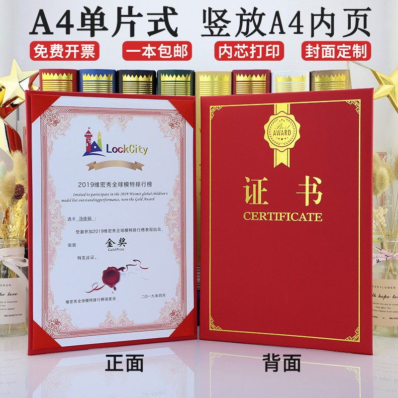Qi Heng A4 Certificate Single Sided A4 Single Sheet Single Page Single Sheet Pearlescent Hard Face Vertical Letter of Appointment Award Honor Graduation Petition Training Certificate Authorization Letter Set Formulated as Envelope Shell