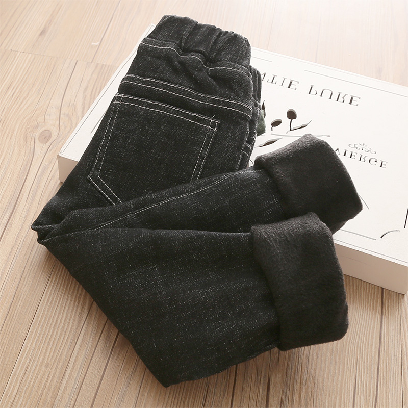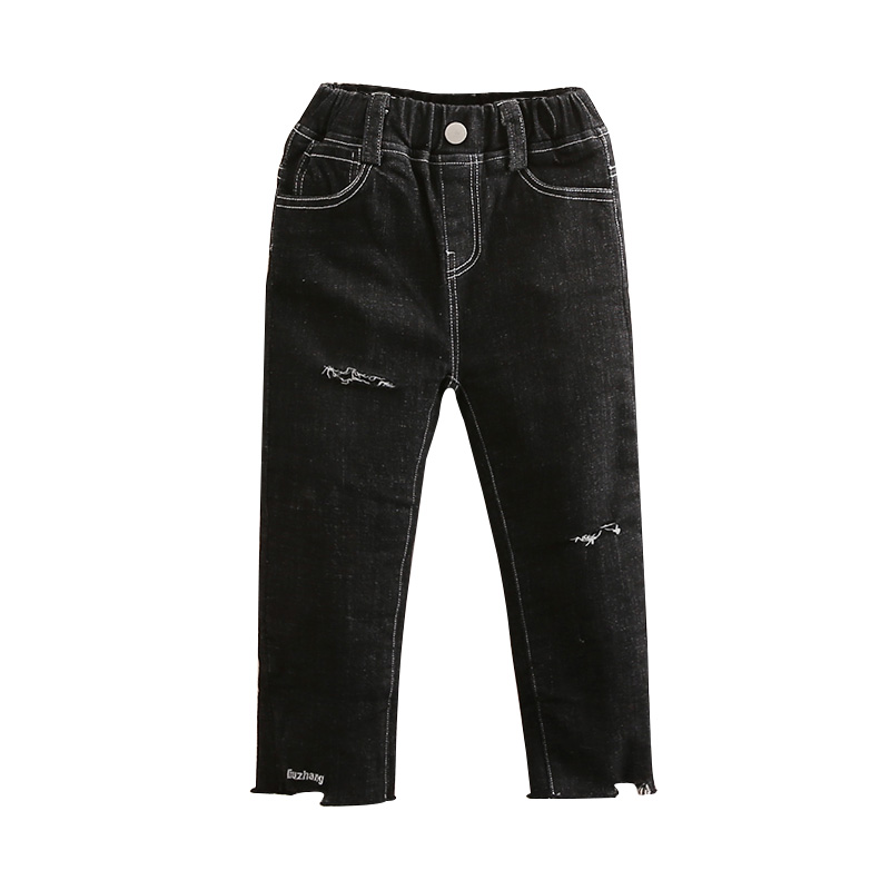 Baby ripped jeans 2022 winter new girls children's clothing children's plus velvet thickened pencil pants kz-c809