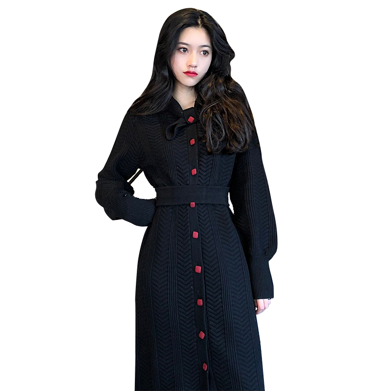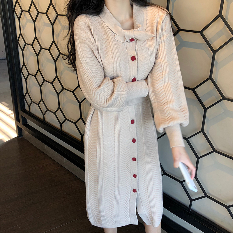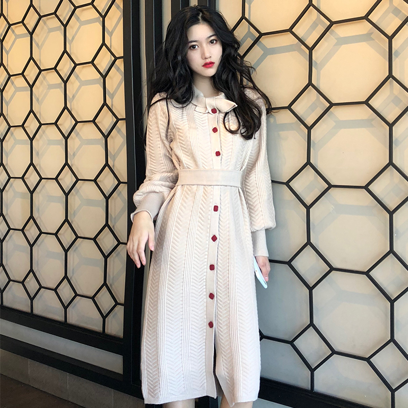 2020 autumn and winter new Korean version of women's temperament retro waist mid-length version of knee-length sweater skirt knitted dress
