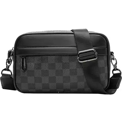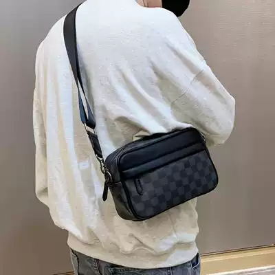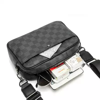 European and American fashion casual shoulder bag new men's business leather shoulder bag Plaid PU cross body Men's bag tide