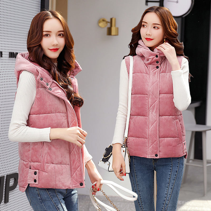 New gold velvet vest women's short autumn and Winter Korean version slim vest large size horse clip down cotton waistcoat tide