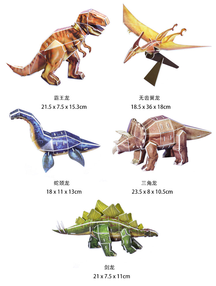 5 dinosaur combinations 8 years old and above assembled 16 dinosaur combinations 3 years old and above assembled Tyrannosaurus Diplodocus pterosaur Triceratops Stegosaurus Plesiosaurus