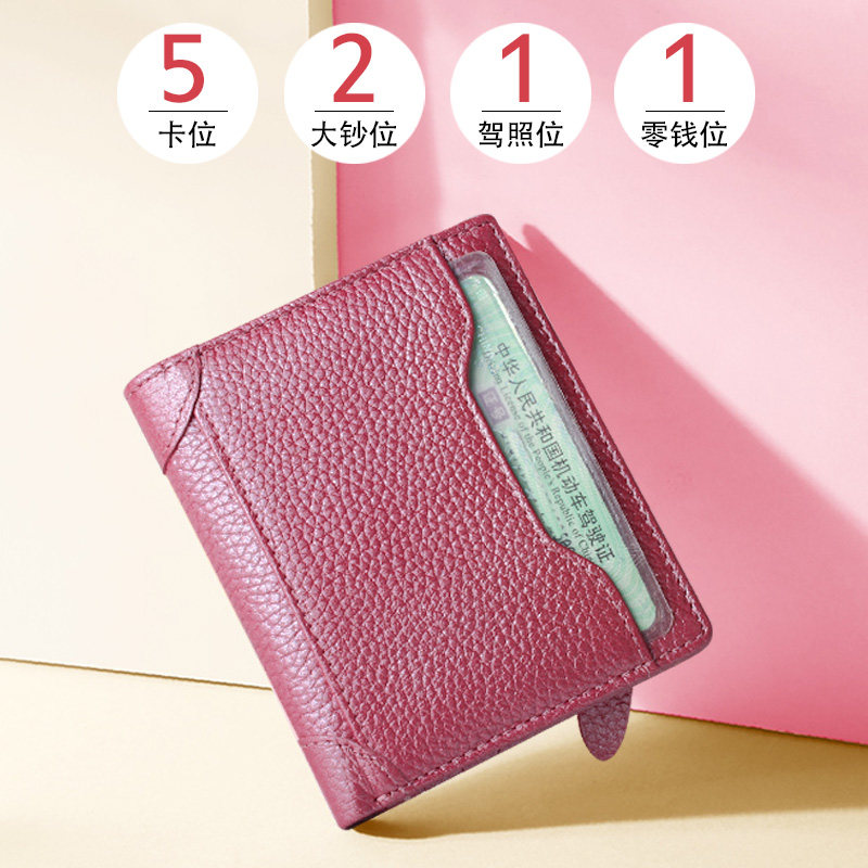 2022 first layer cowhide wallet ladies mini wallet female leather short multi-function card holder all-in-one coin purse