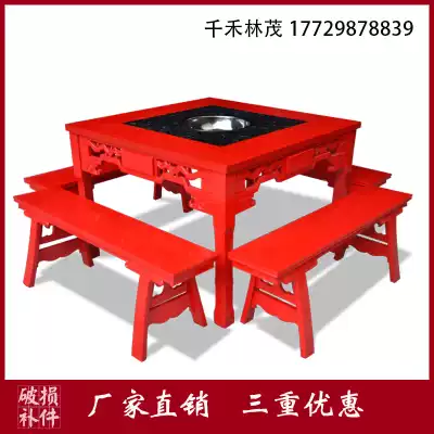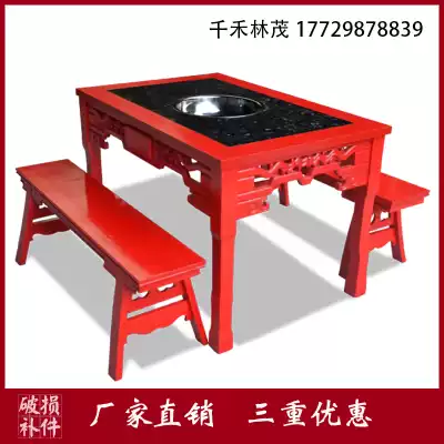 Hot Pot restaurant marble hot pot table induction cooker integrated restaurant merchant home red gas stove solid wood dining table and chair