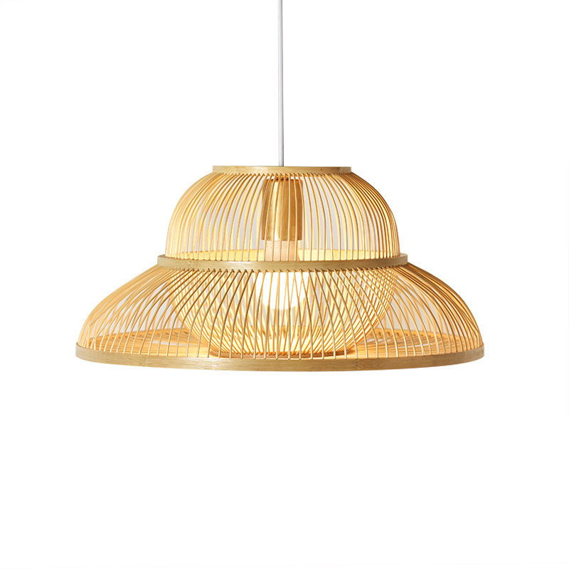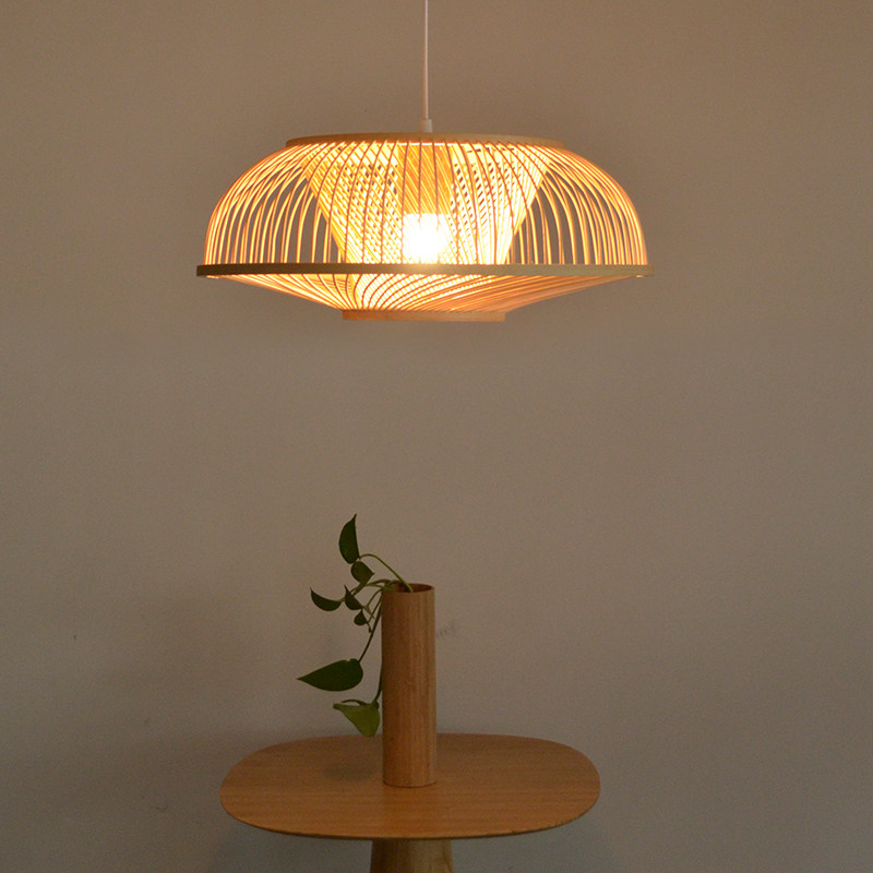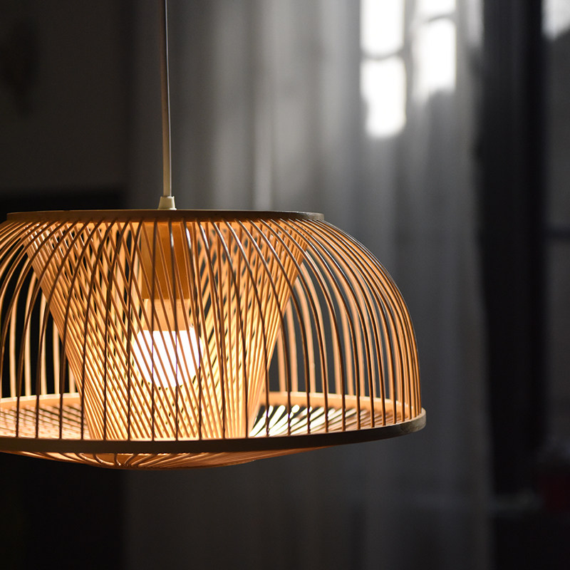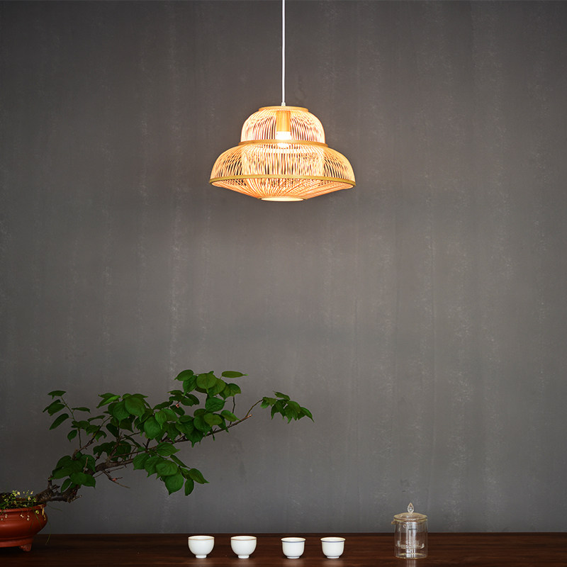 There are wooden bamboo chandeliers dining room Japanese lamps bedroom new Chinese study solid wood porch balcony Zen simple