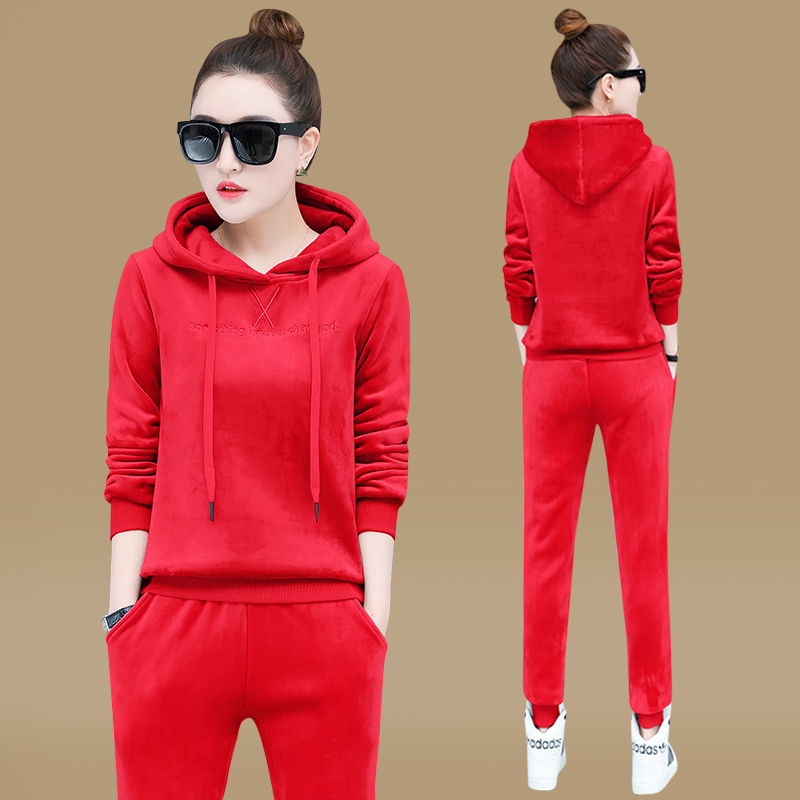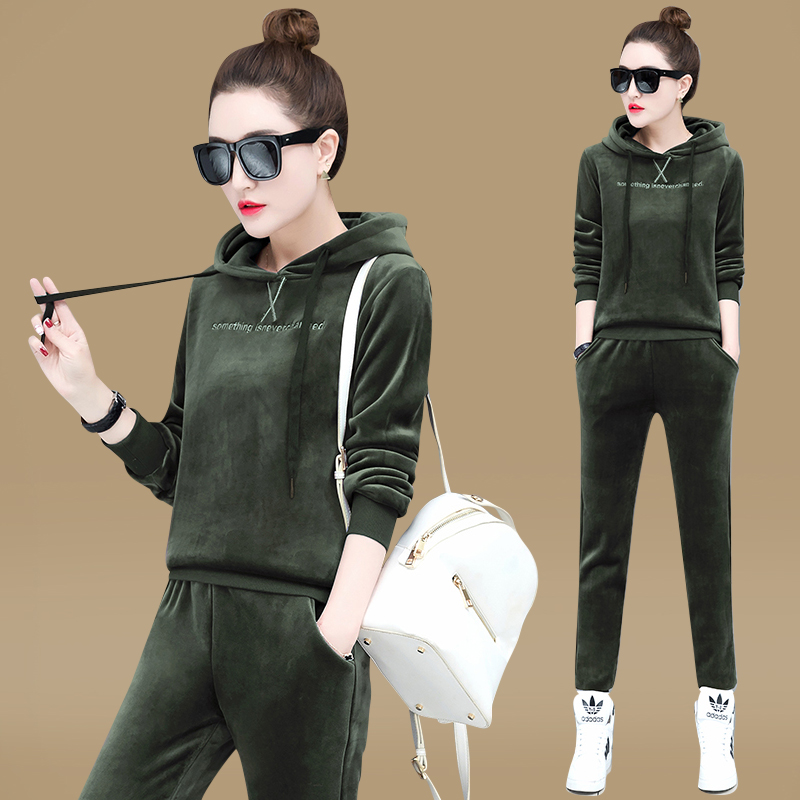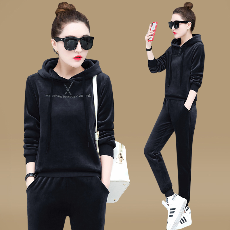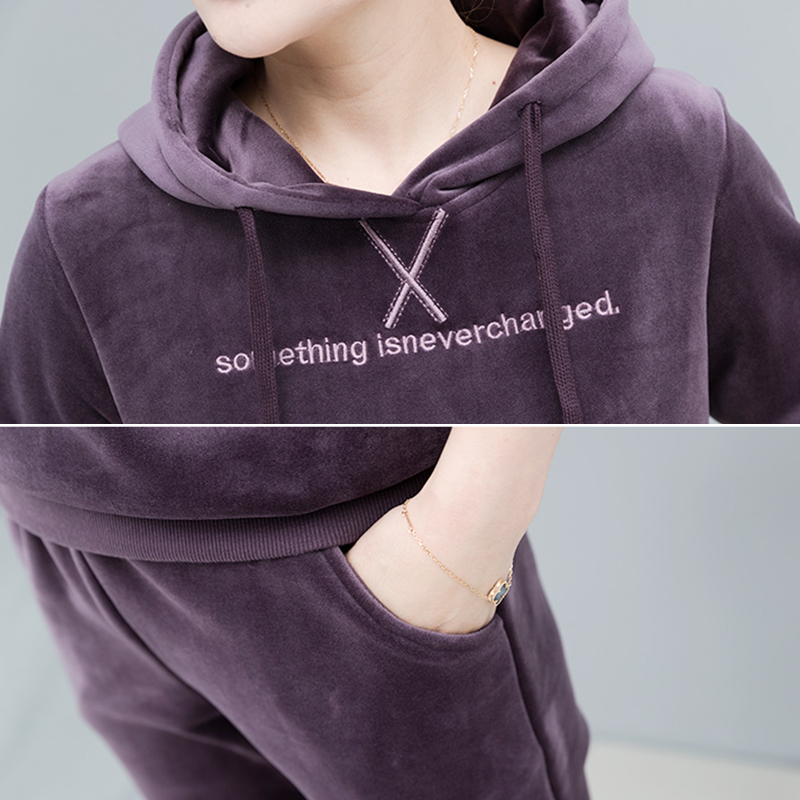 Gold velvet sportswear suit women's autumn and winter 2022 new double-sided thickened fleece sweater fashion and leisure two-piece