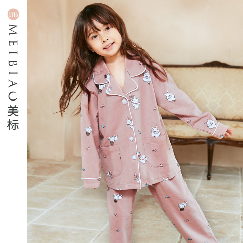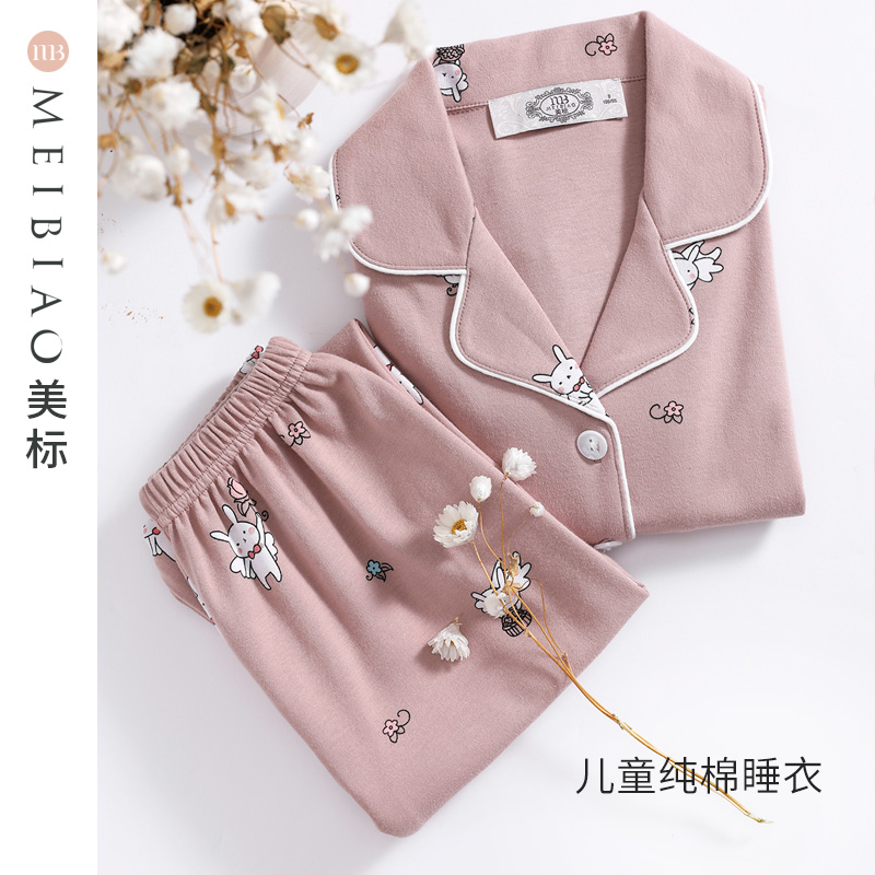(break code Jumbo jumbo) beauty mark spring autumn great boy pure cotton pyjamas suit girl cartoon full cotton quality children's home clothes