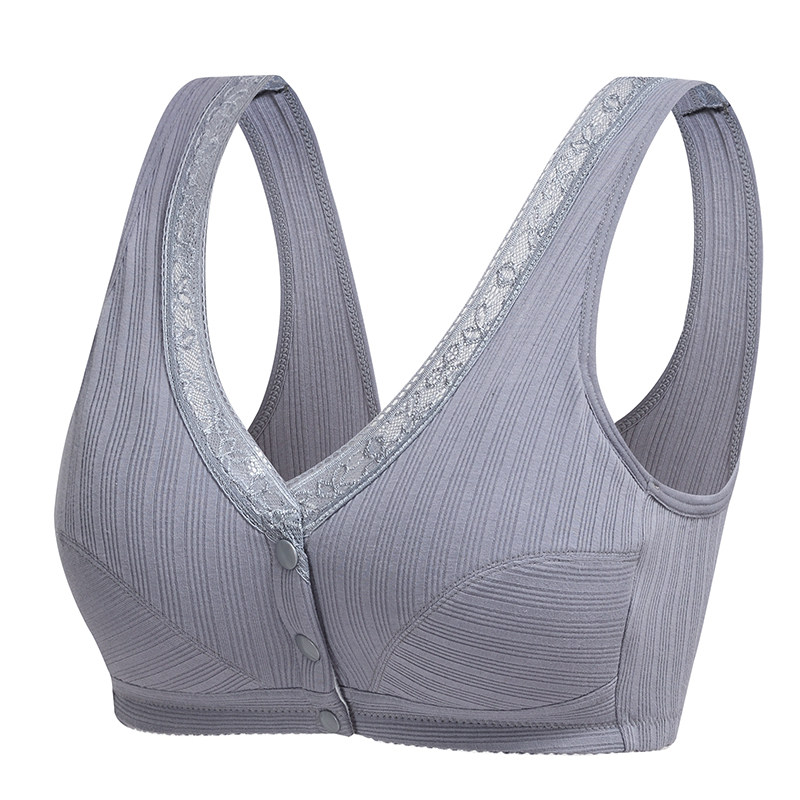 Middle-aged and elderly underwear women's bra without steel ring comfortable cotton mother middle-aged women vest style front buckle large size bra