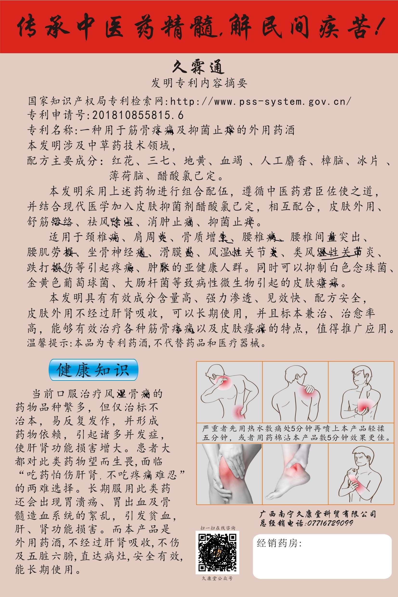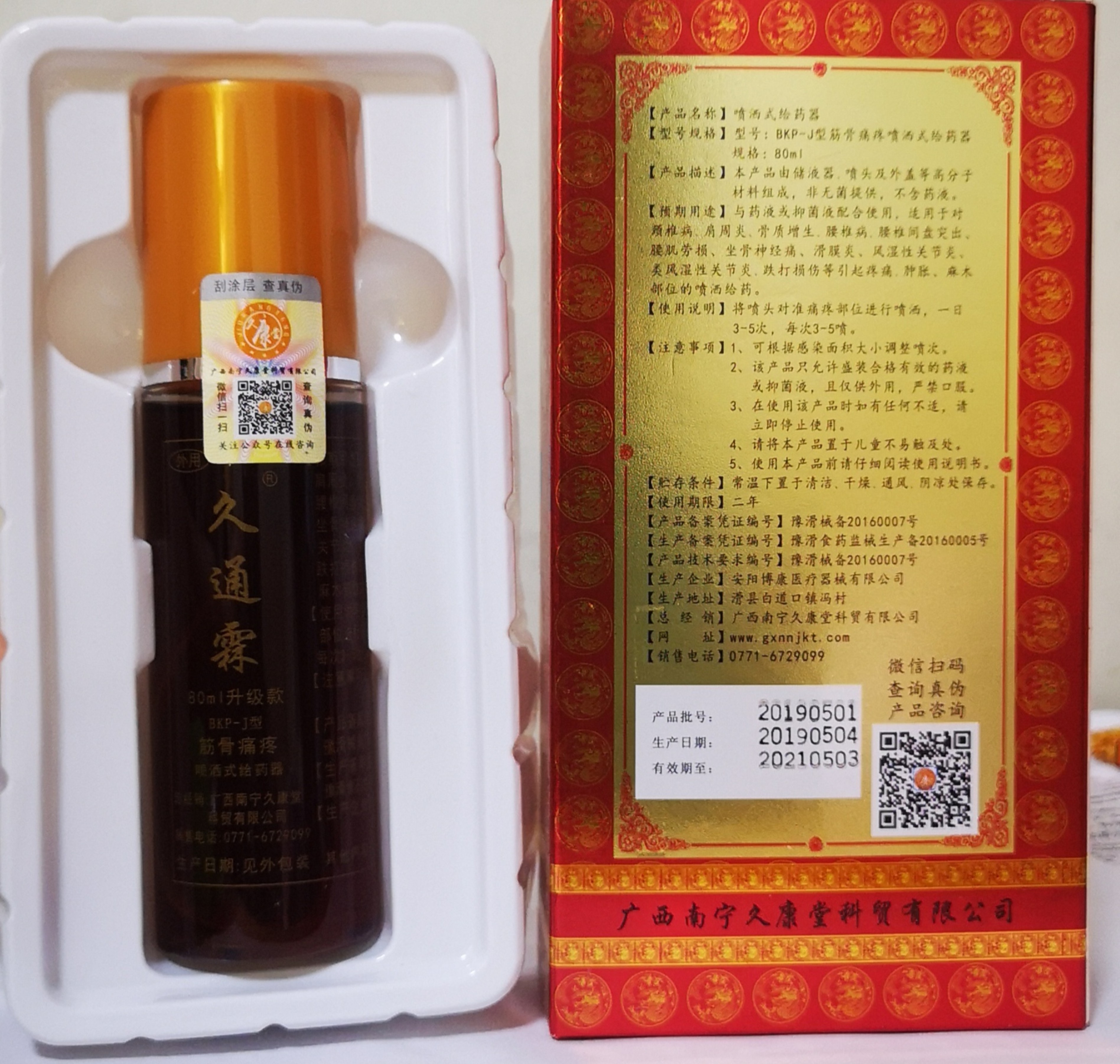 Upgrade for Jiu Tonglin Bones Pain Pain Spray Type Administration of Prolonged Pain Spirits Spray Guangxi Nanning Jiukang Hall Enterprise