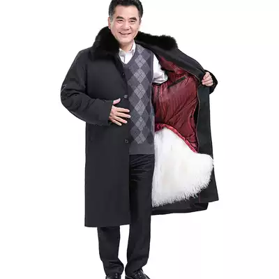 Ancient desert sheep middle-aged and elderly beach wool sheepskin coat fur one trench coat long version warm Men's winter coat