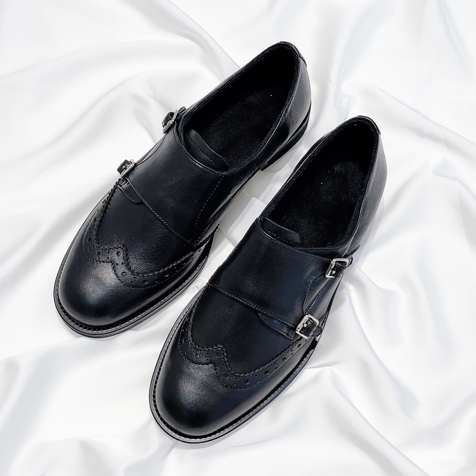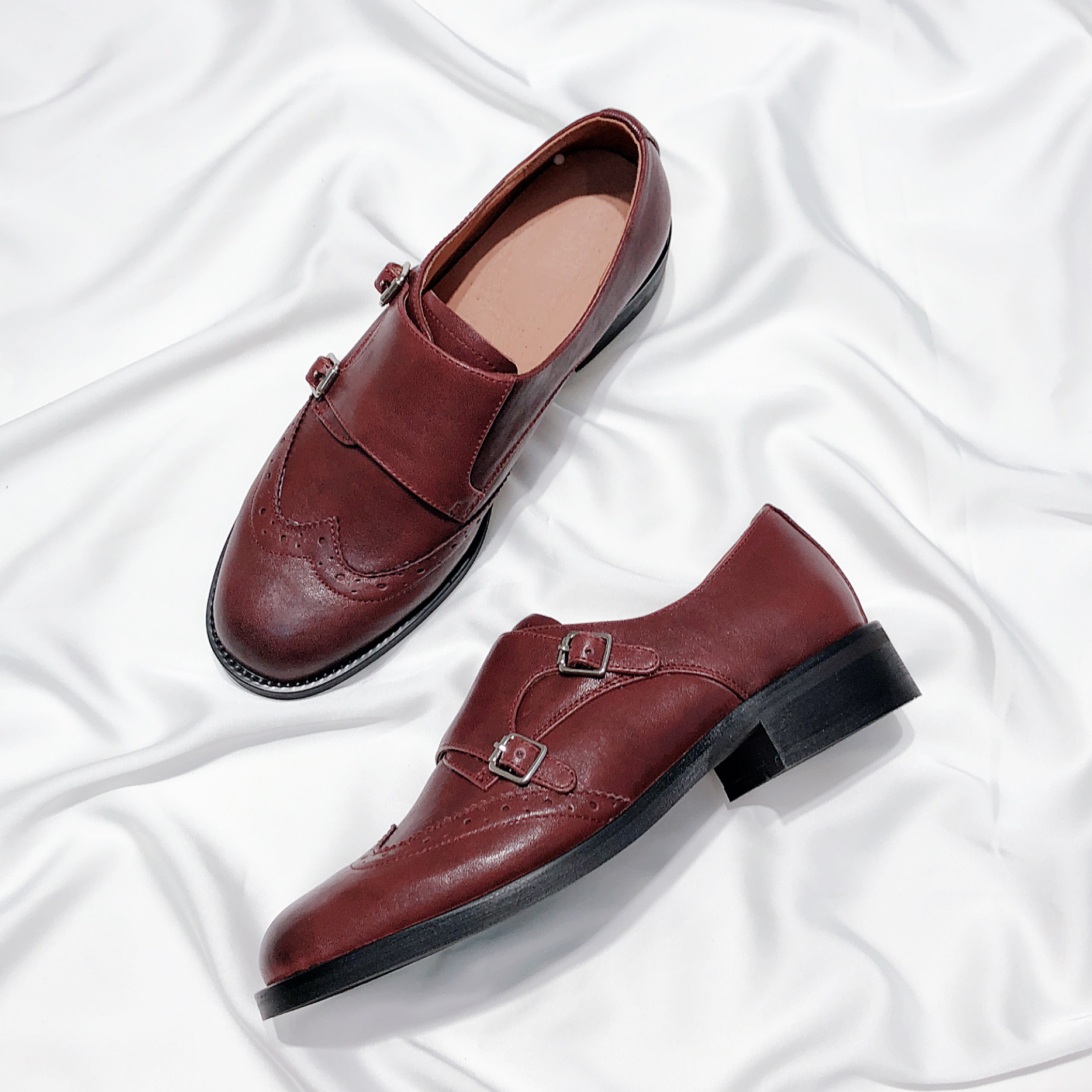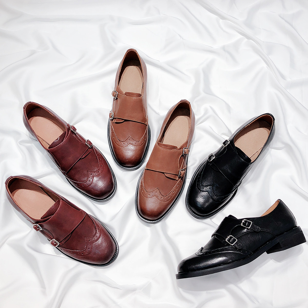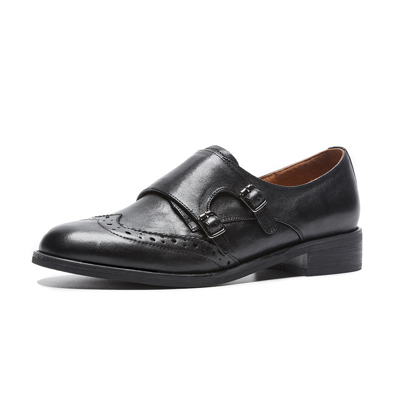 Senyu Haixiang 2023 new leather British style thick heel Korean version all-match small leather shoes flat bottom retro carved single shoes