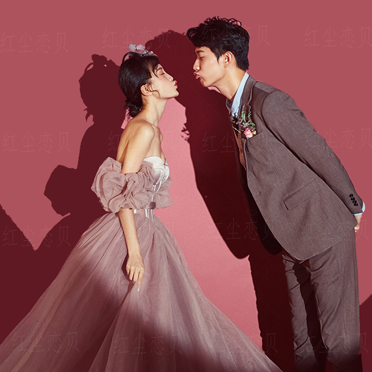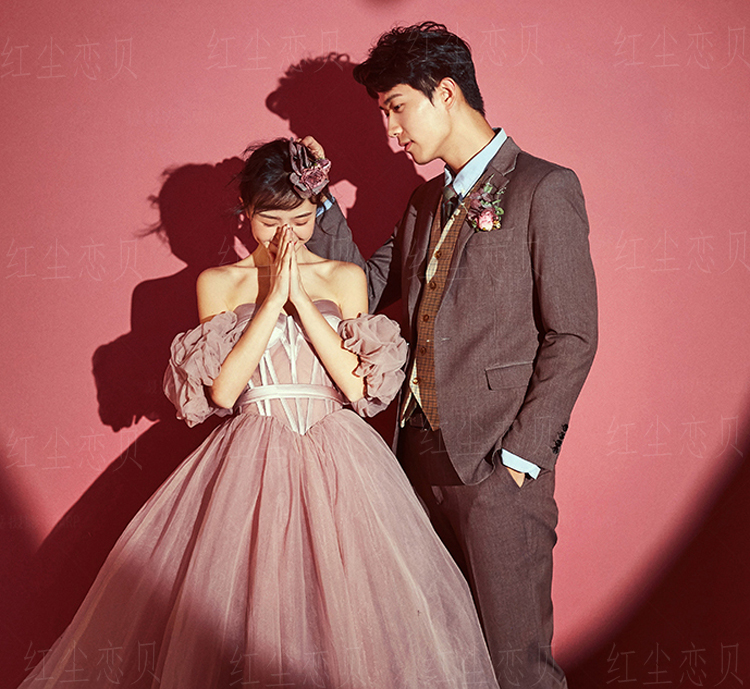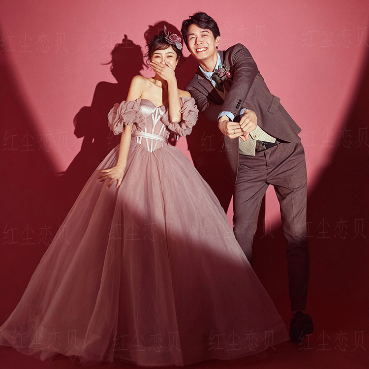 Photo Gallery Themed Clothing Han Edition Tennis Yarn Couple Photo Gown Photography Writing Real Tug Tail Wedding photo Pink color yarn