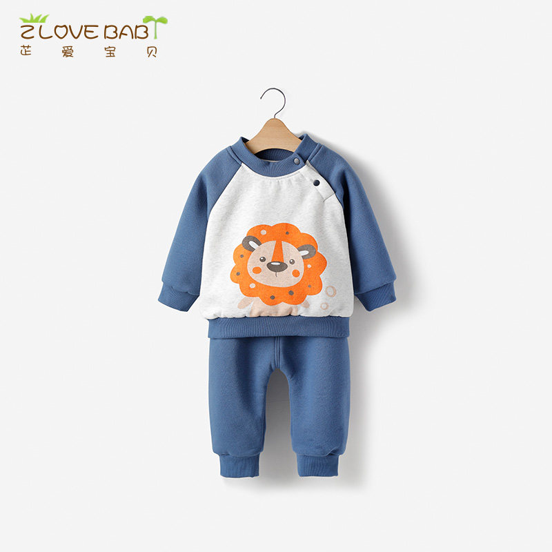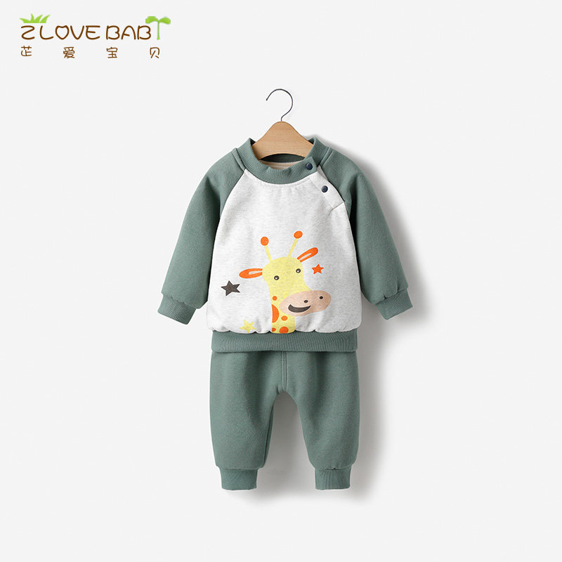 Baby sweater suit plus velvet thickened female infant clothes long sleeve winter warm cotton jacket men's baby winter coat
