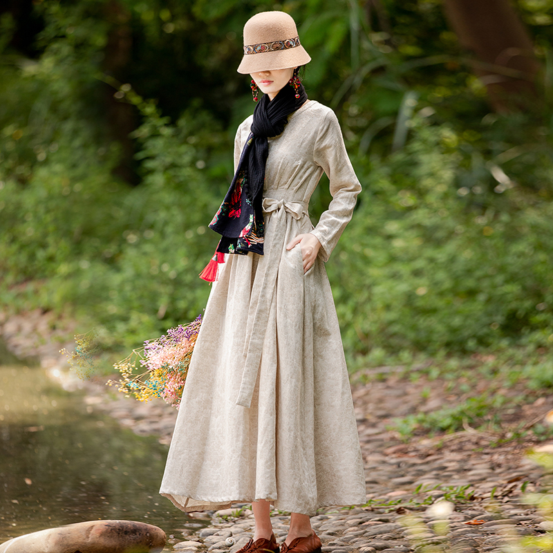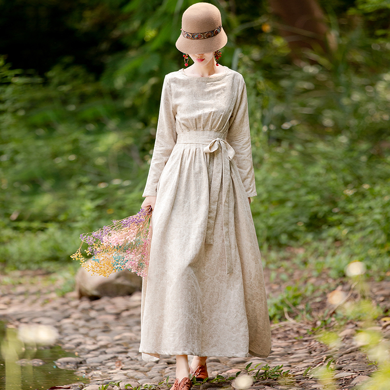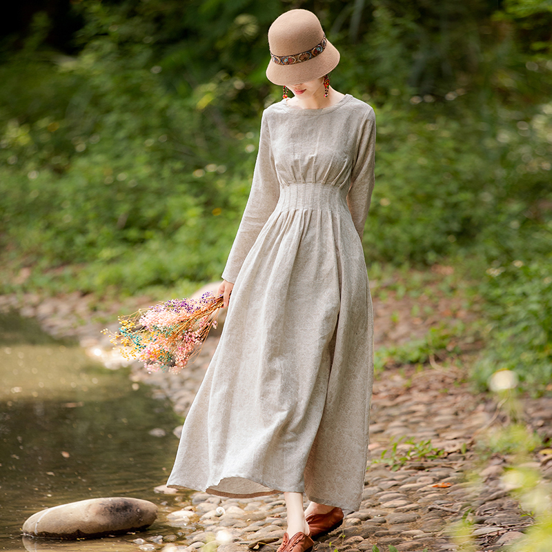 Yingying, such as ethnic wind and autumn, cotton linen dress literature and art Fan retro first autumn long skirt woman over knee display slim and high temperament